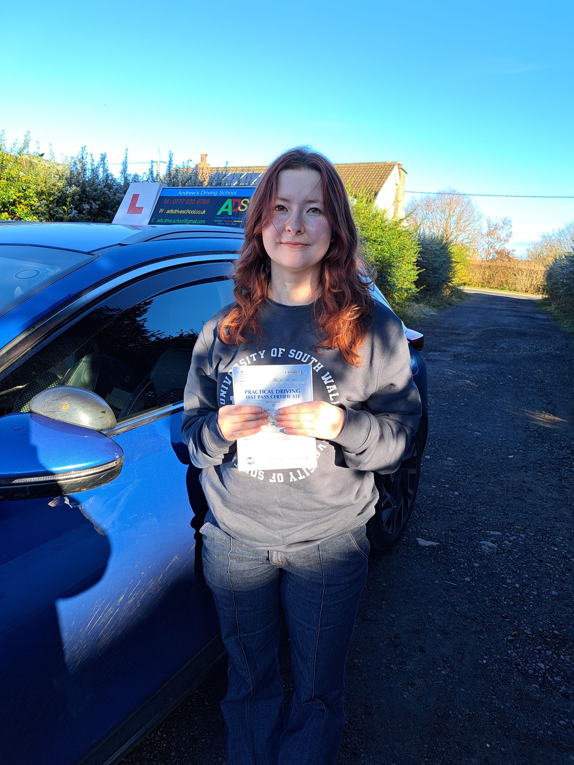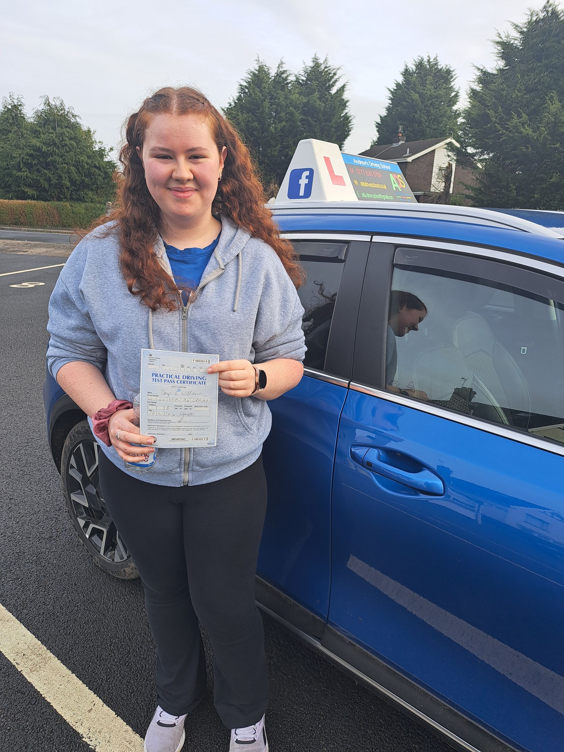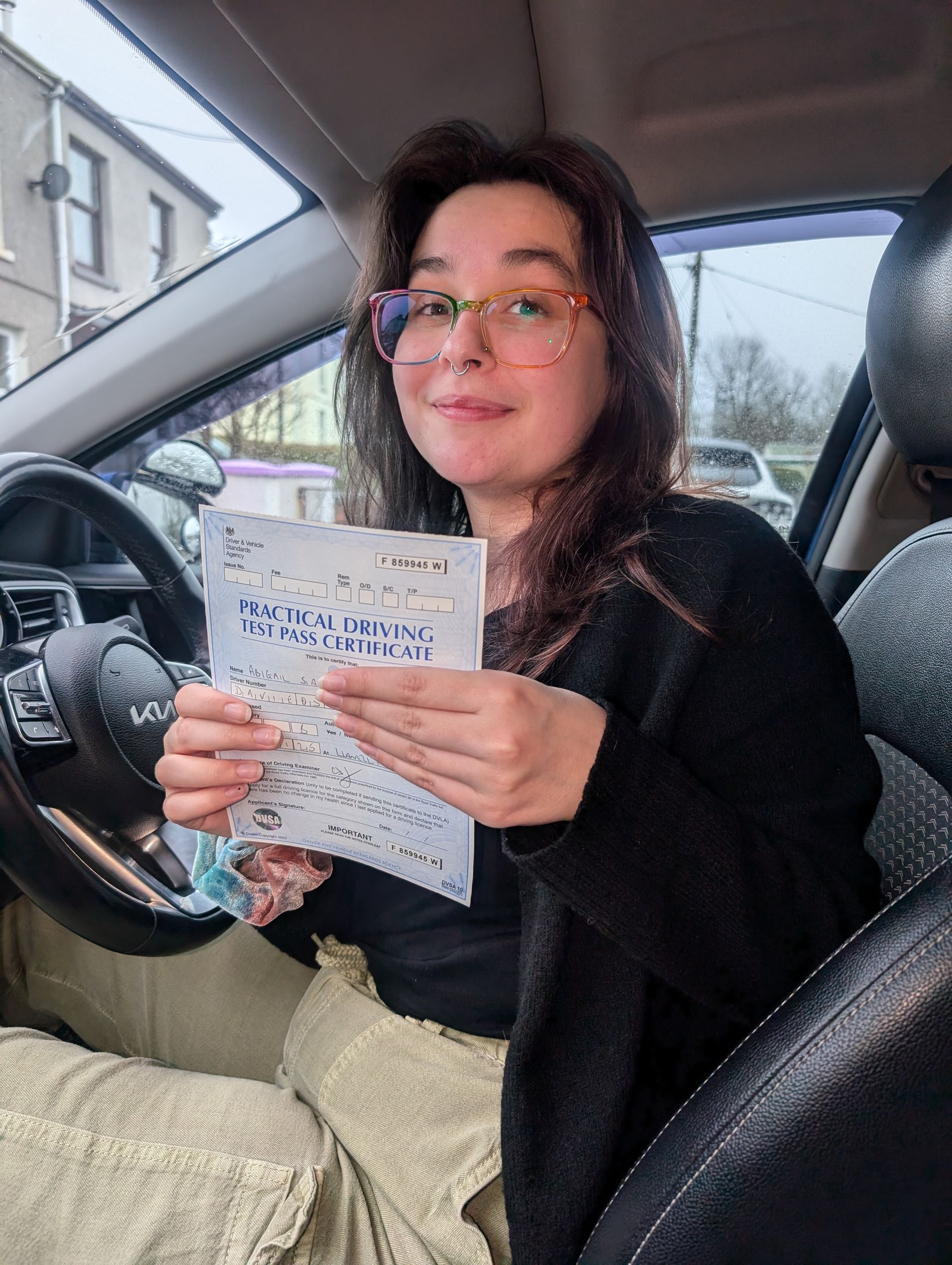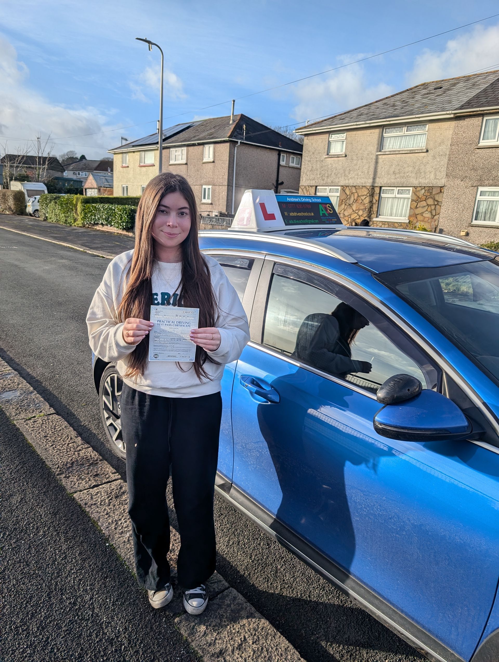 Abbi Davies. passed in Llanelli first attempt with just 4 minor faults.