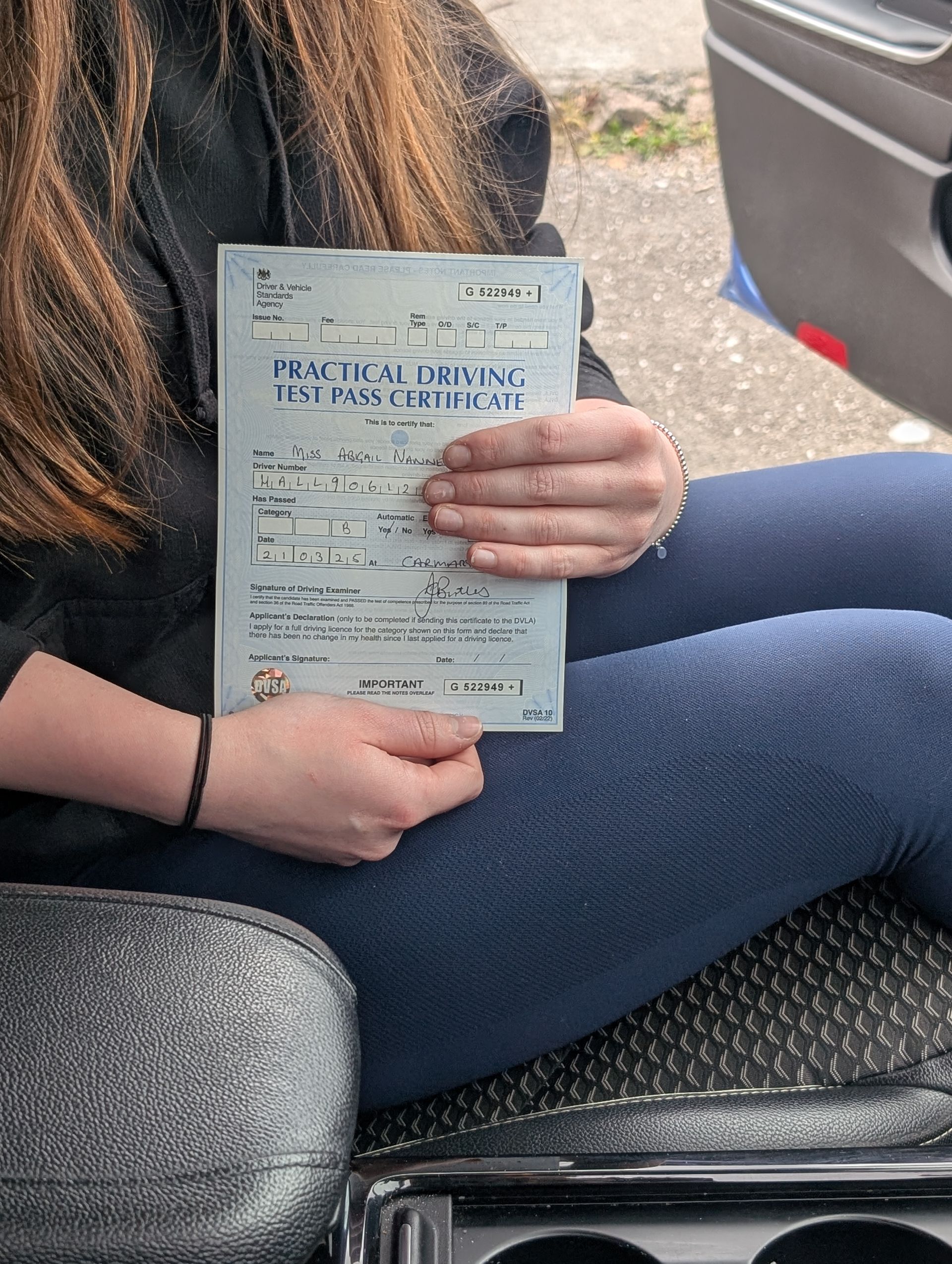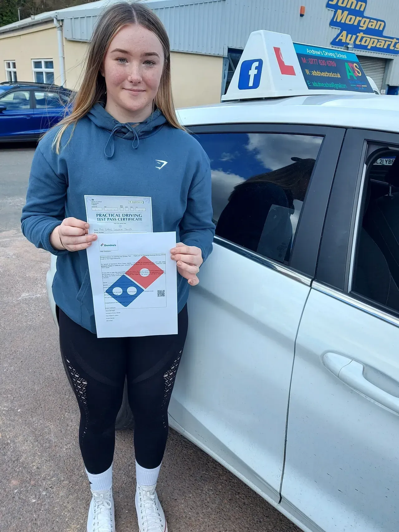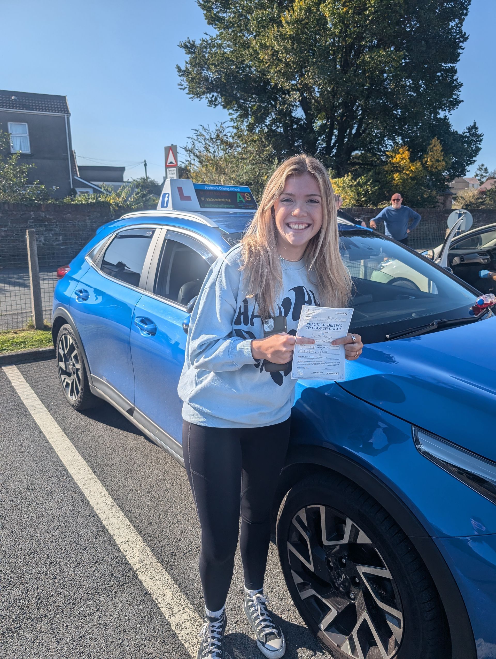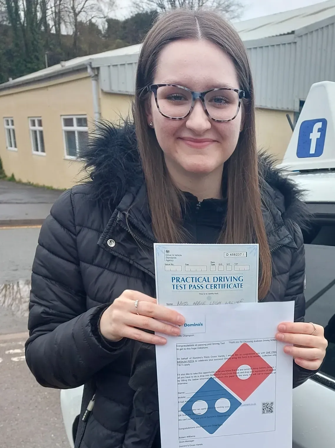 Abbi Davies. passed in Llanelli first attempt with just 4 minor faults.