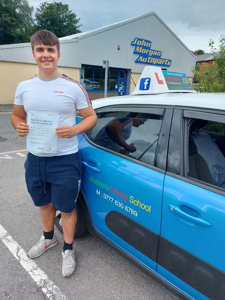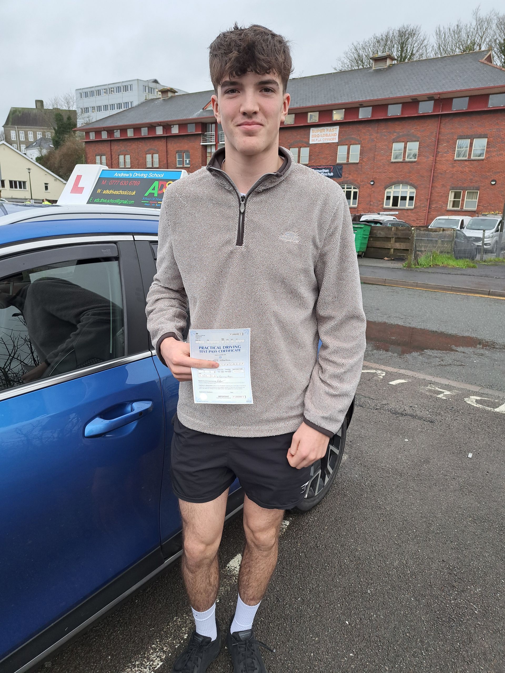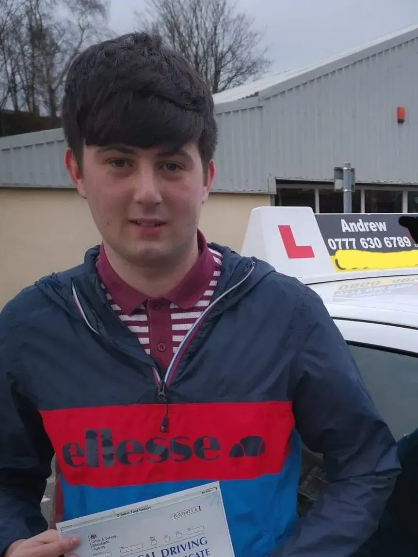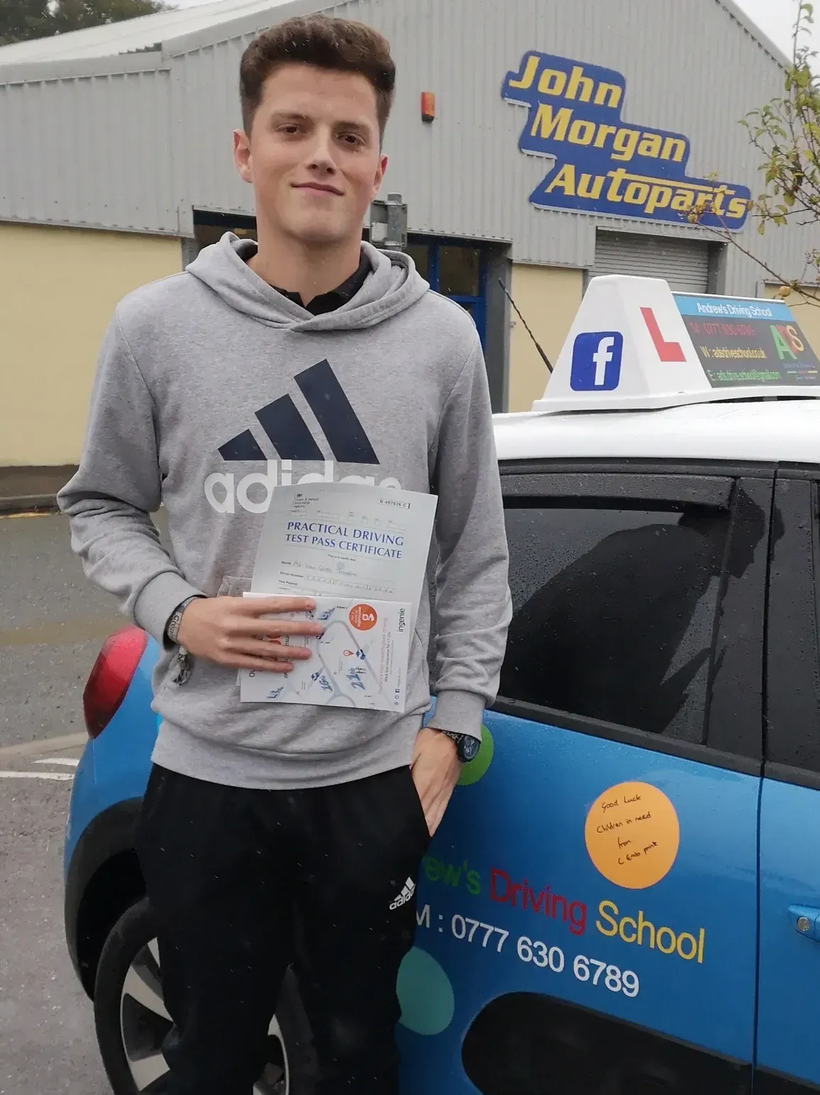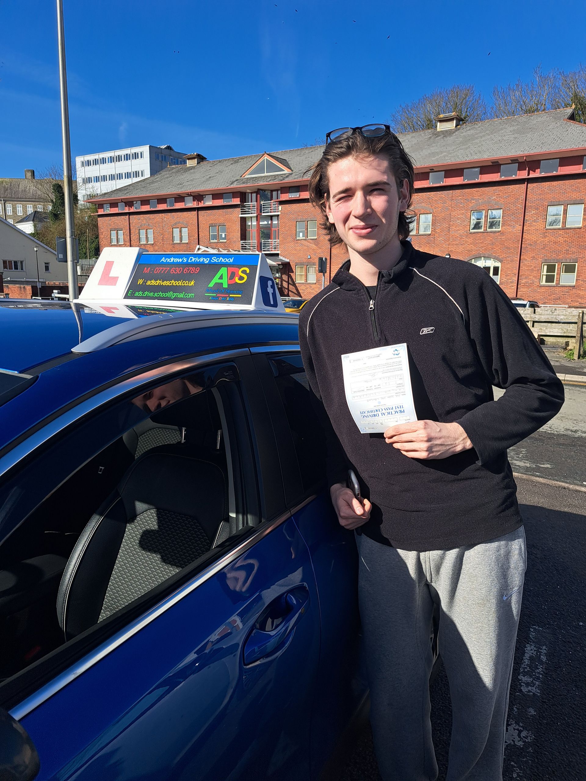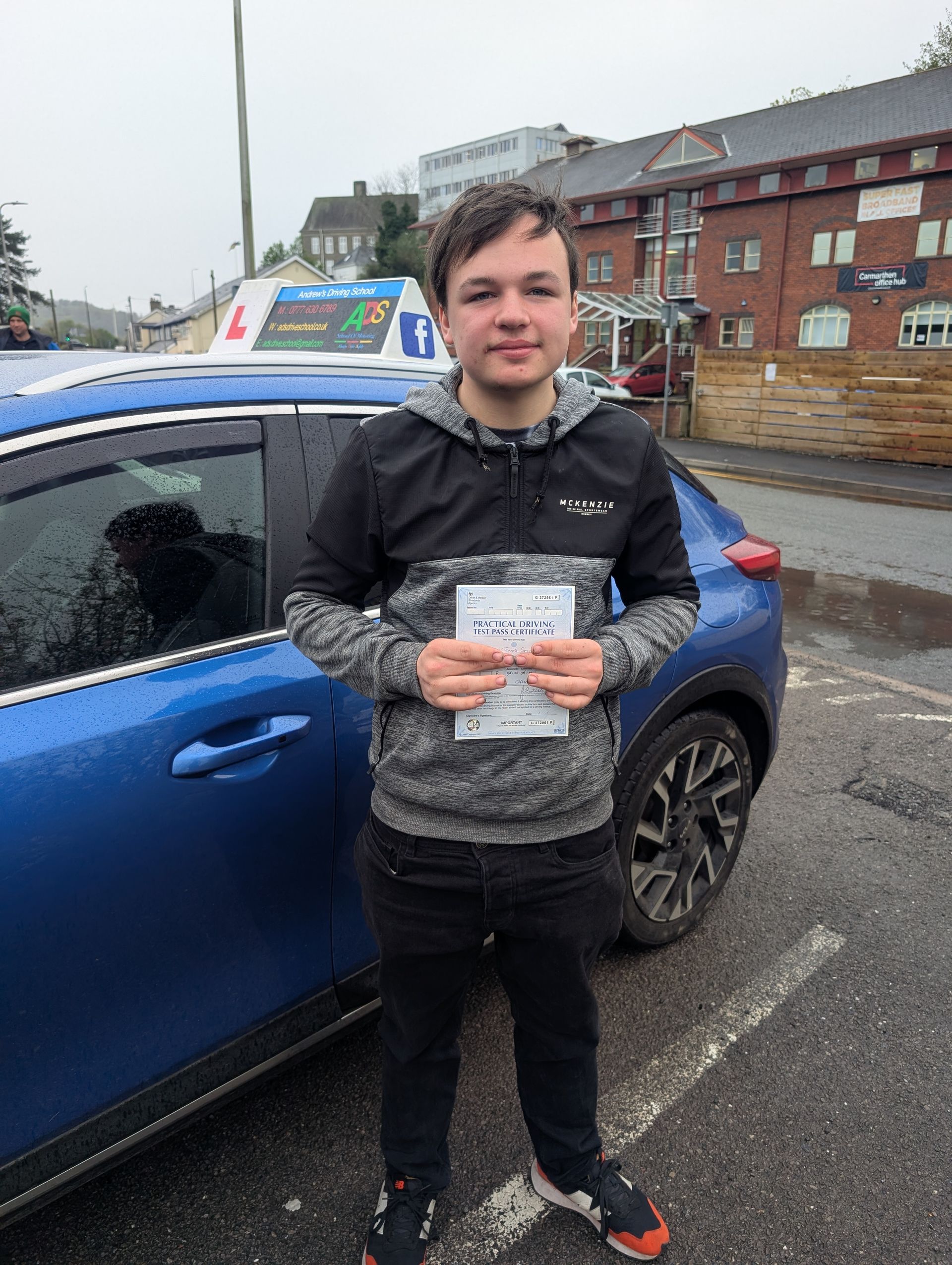 Tom Barnes, first time pass in Carmarthen. Well done pal. Absolutely brilliant instructor Andrew is a grate person to get along with,very organised and makes the most of the lesson booked, very good at explaining things in the most simple form and understanding way to improve you as a driver passed with only 9 hours ! HIGHLY RECOMMEND!!! Thank you Andrew!
