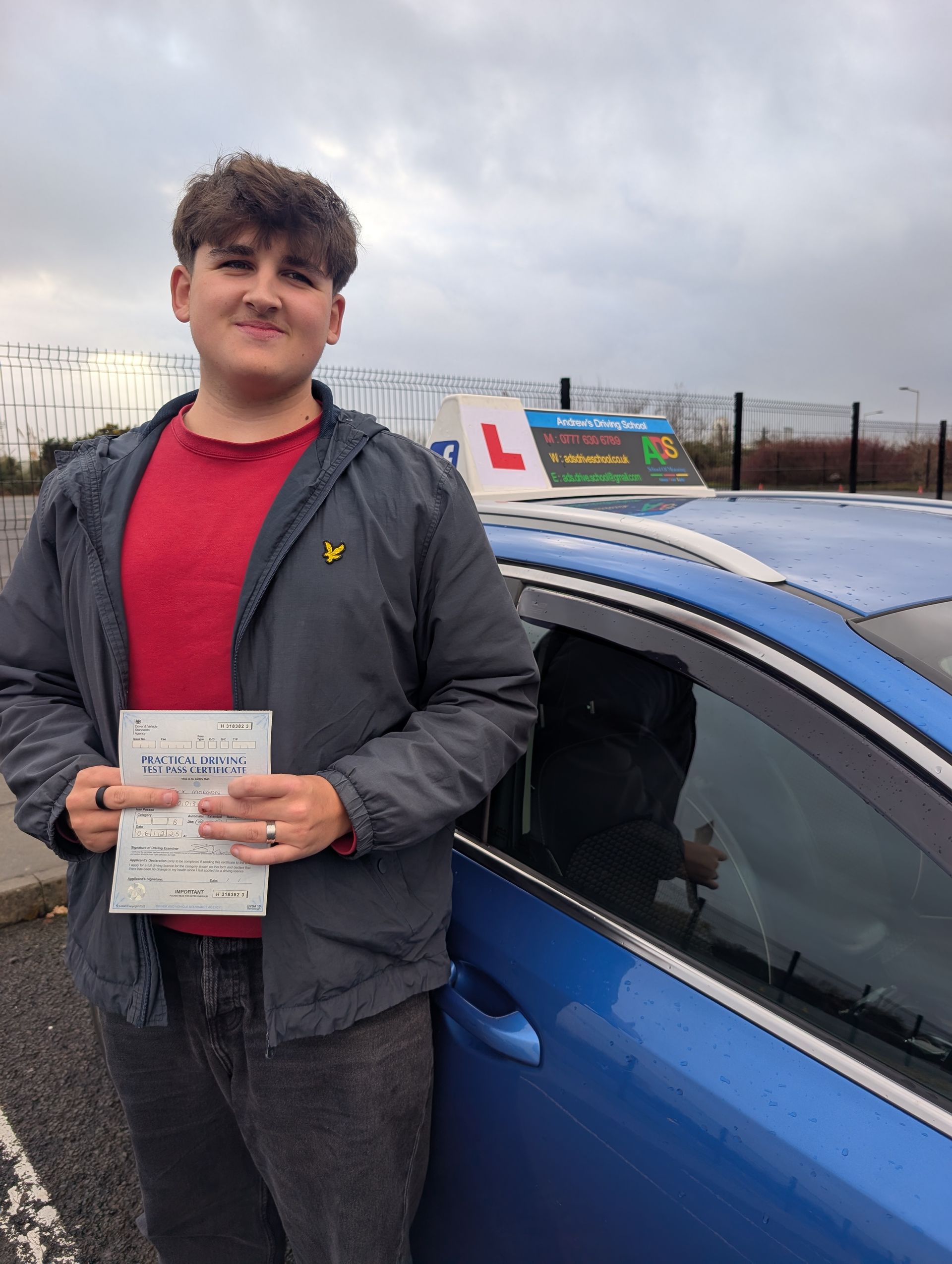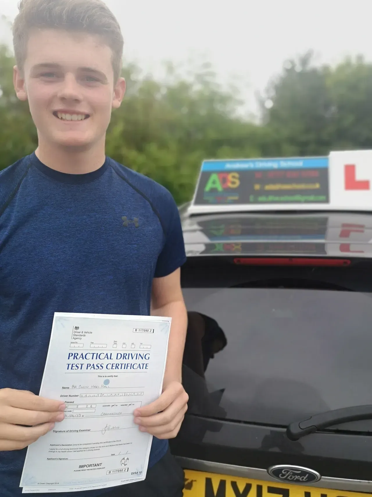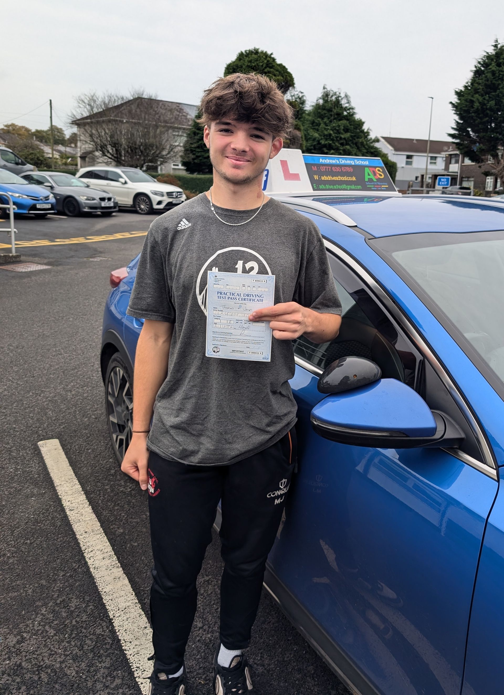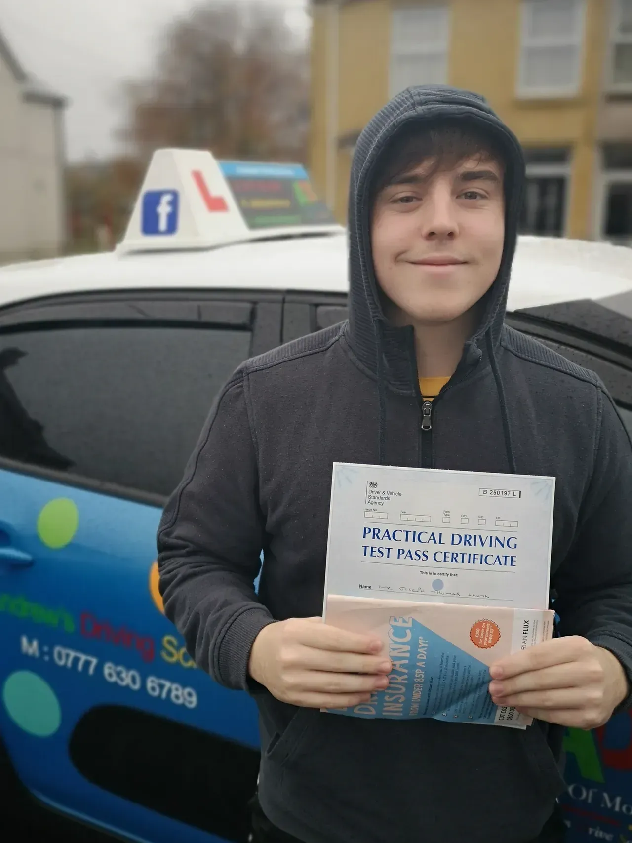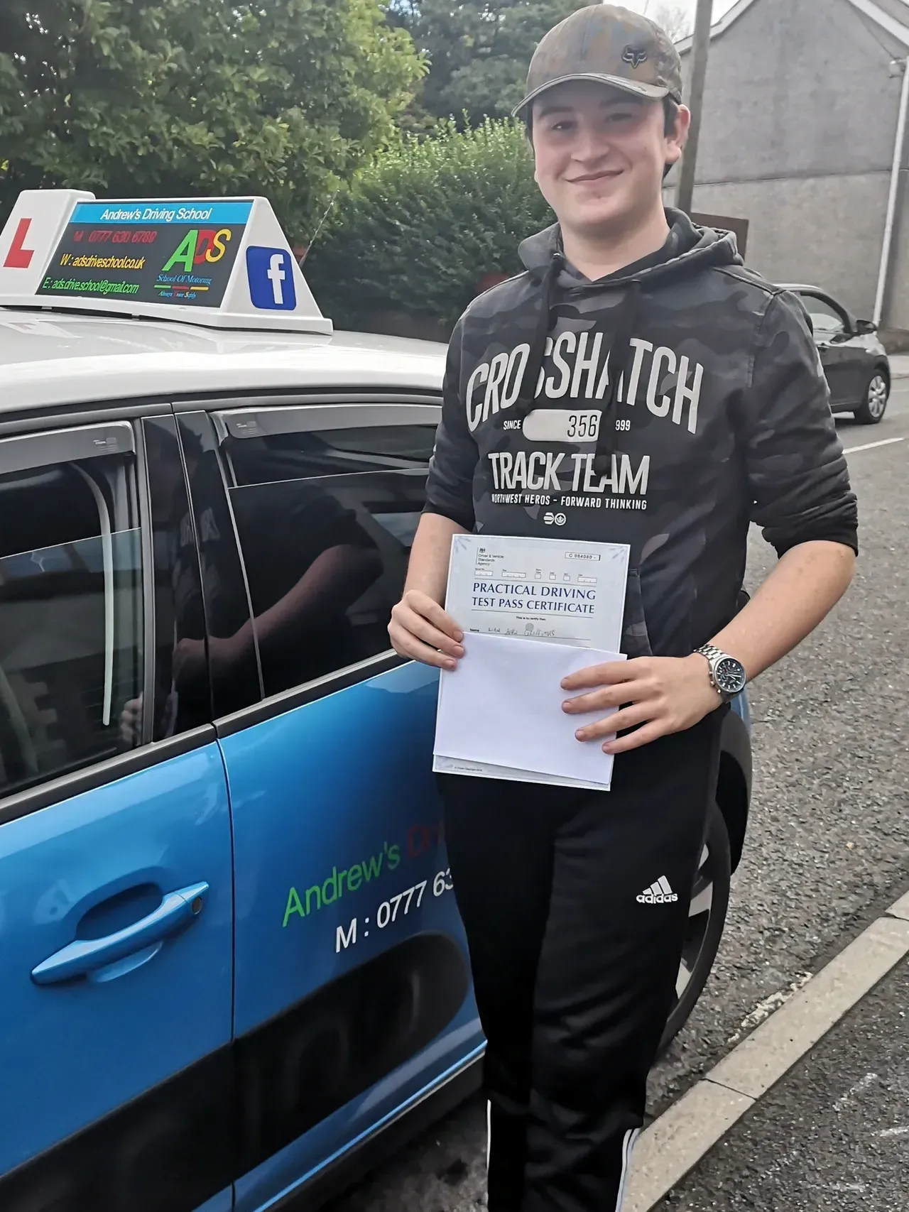 Tom Barnes, first time pass in Carmarthen. Well done pal. Absolutely brilliant instructor Andrew is a grate person to get along with,very organised and makes the most of the lesson booked, very good at explaining things in the most simple form and understanding way to improve you as a driver passed with only 9 hours ! HIGHLY RECOMMEND!!! Thank you Andrew!