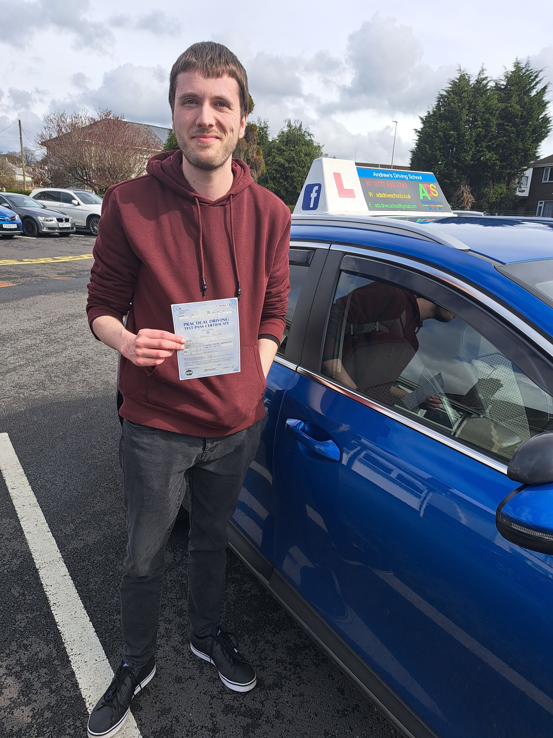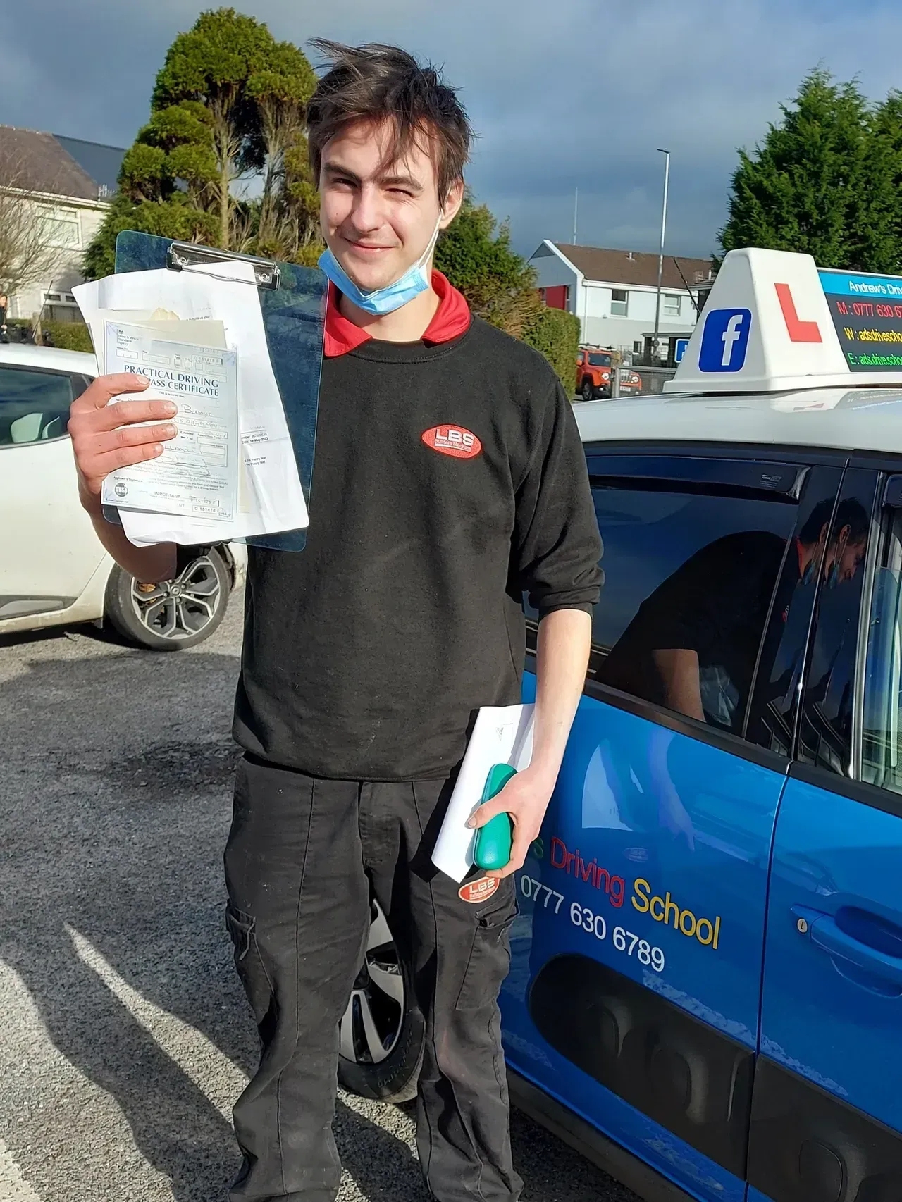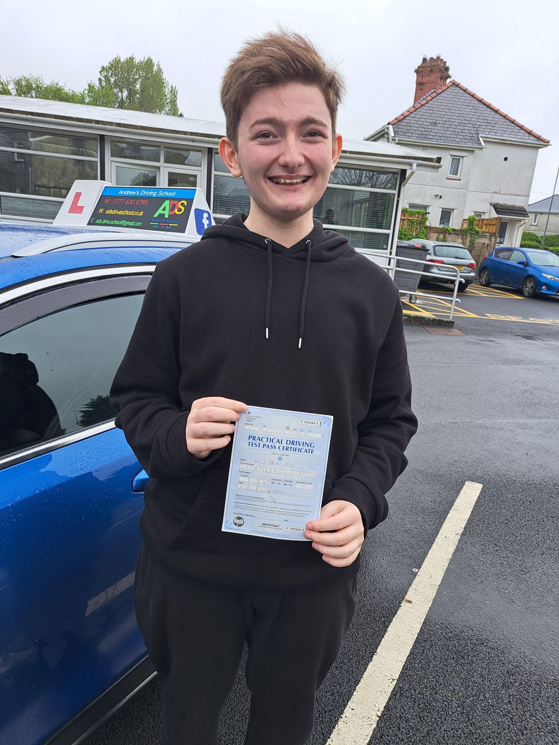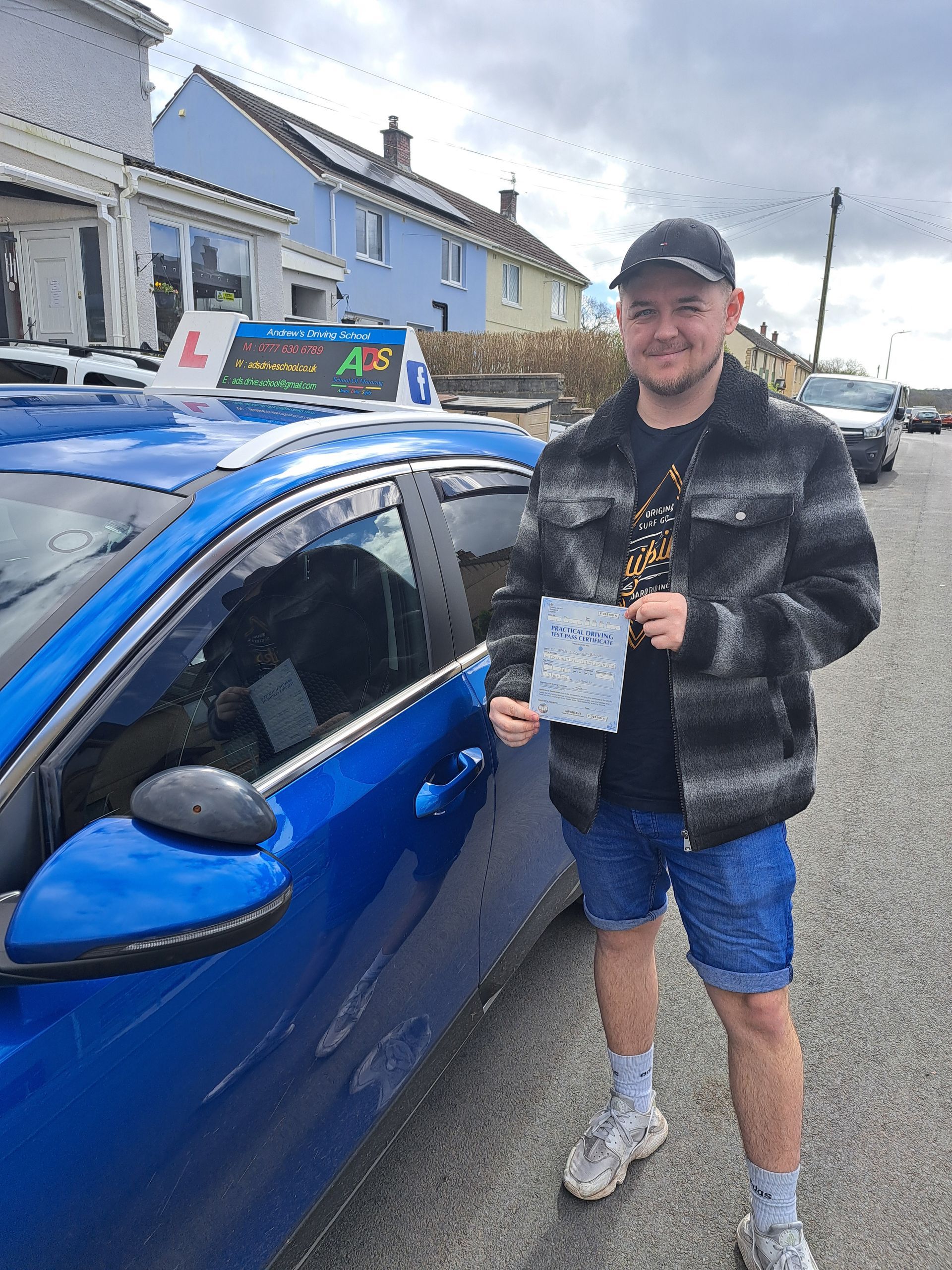 Aaron Tormey, Carmarthen, First time pass. Would like to thank Andrew for the time and patience he had for me, he made my driving experience a great experience and would highly recommend to anyone wanting to learn how to drive. Thank you Andrew! Beep beep haha!