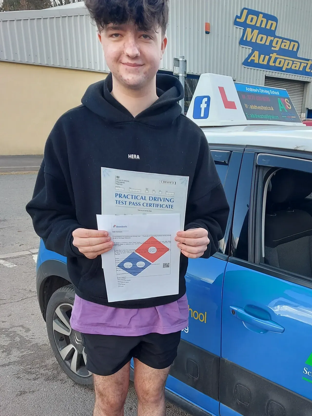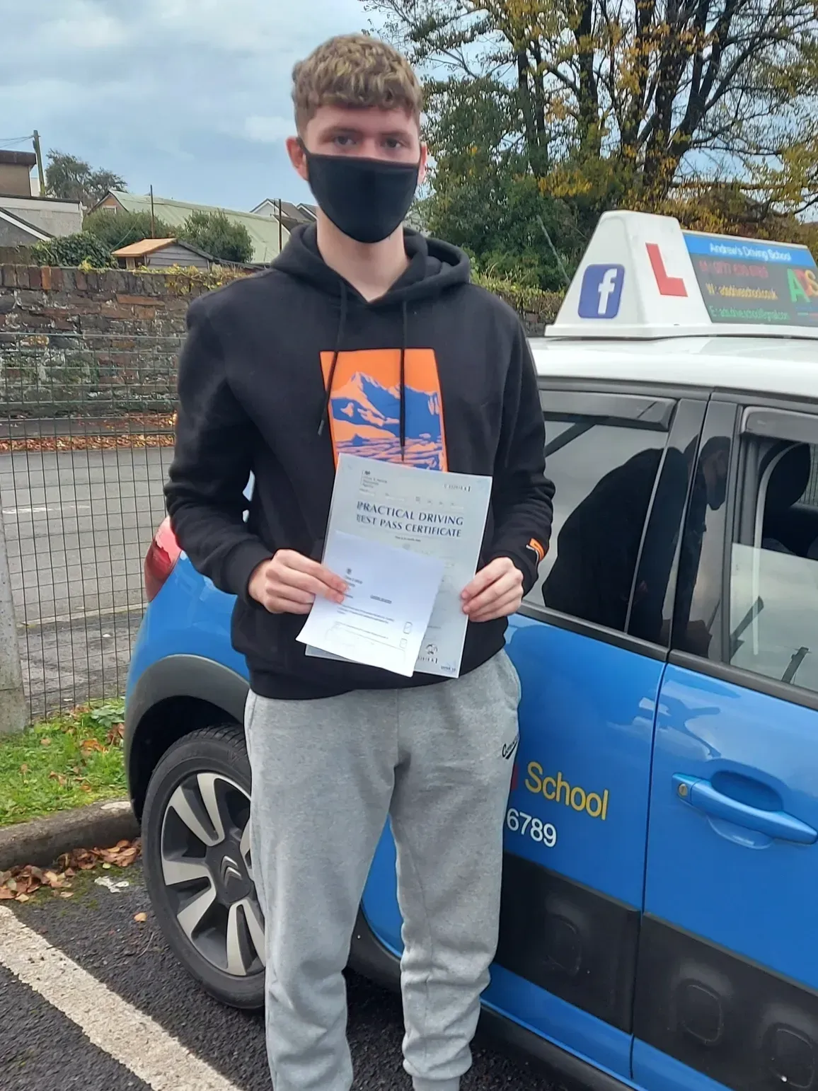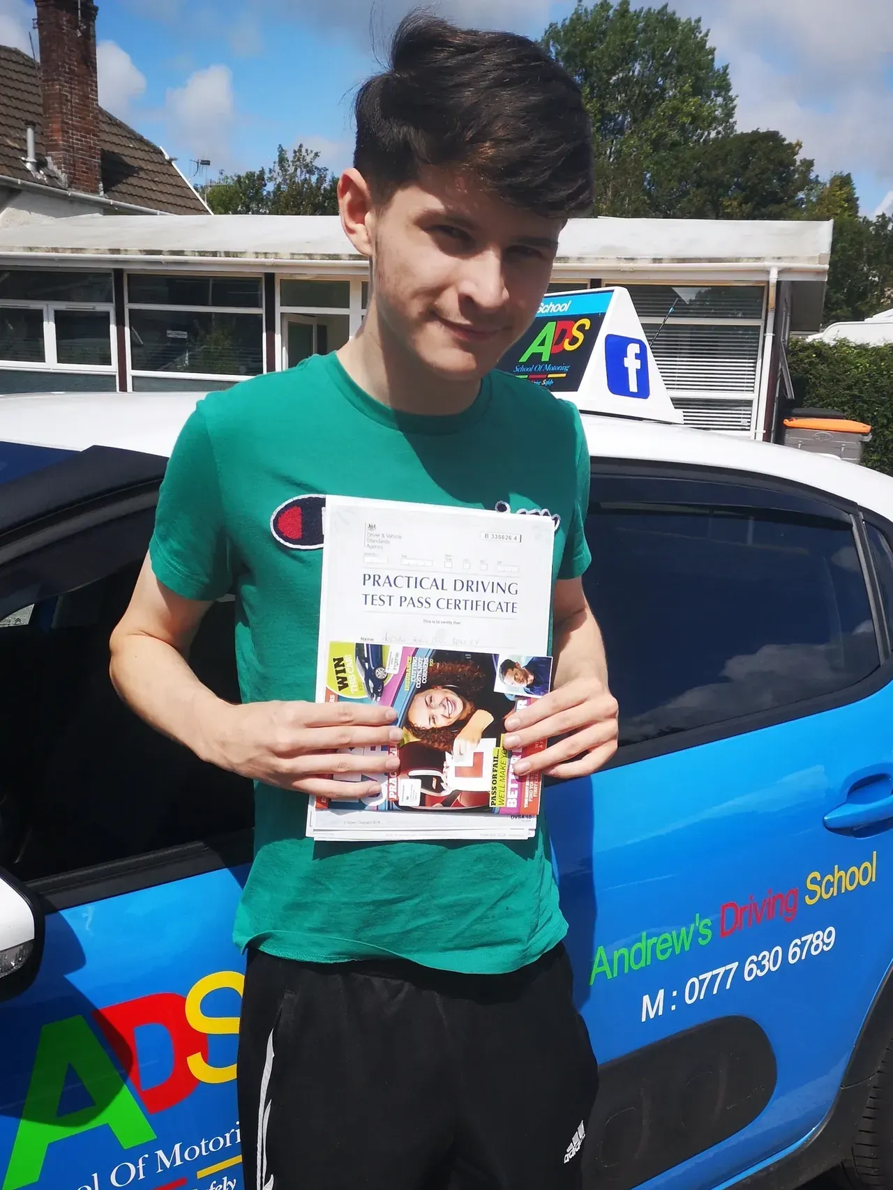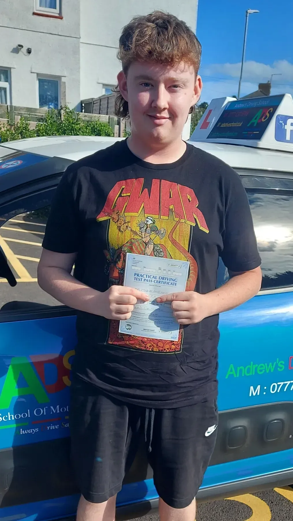 Aaron Tormey, Carmarthen, First time pass. Would like to thank Andrew for the time and patience he had for me, he made my driving experience a great experience and would highly recommend to anyone wanting to learn how to drive. Thank you Andrew! Beep beep haha!