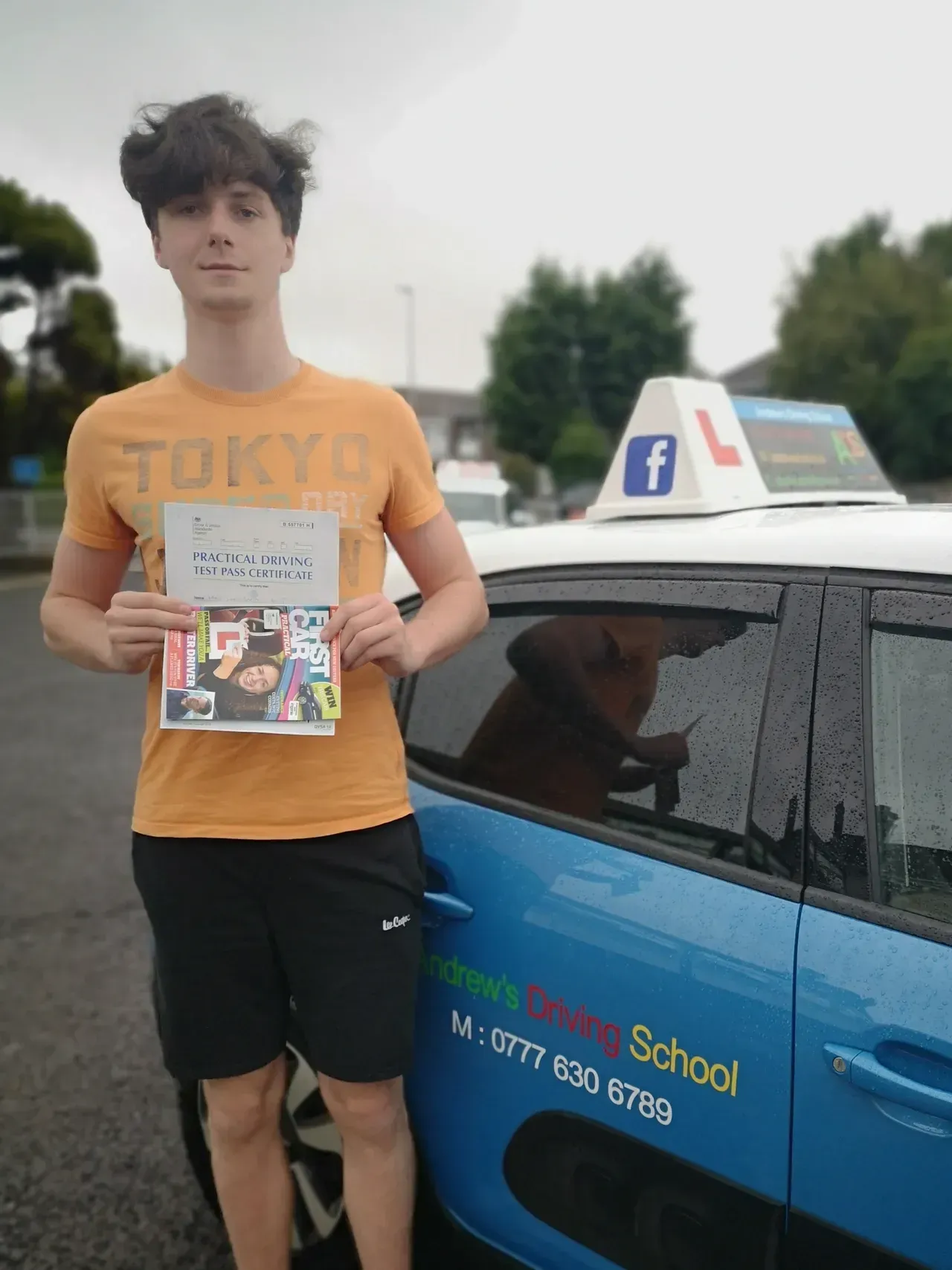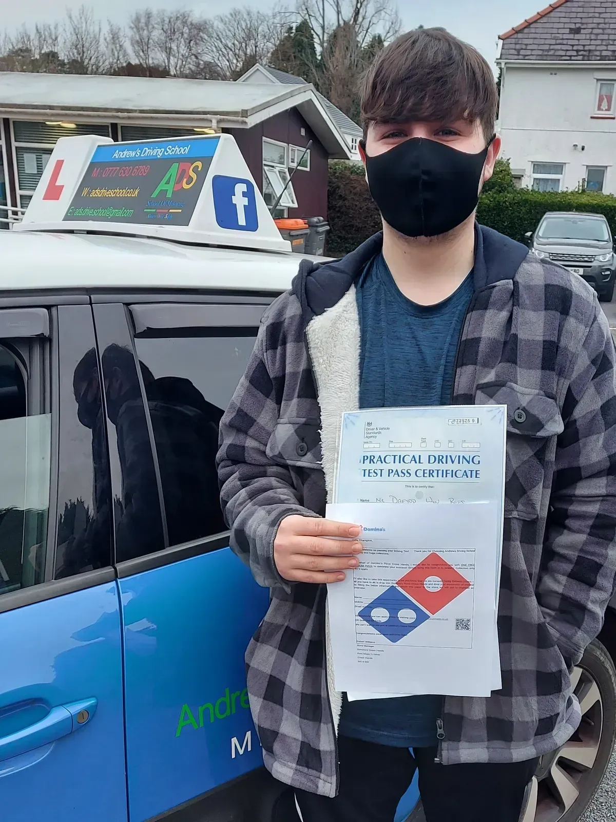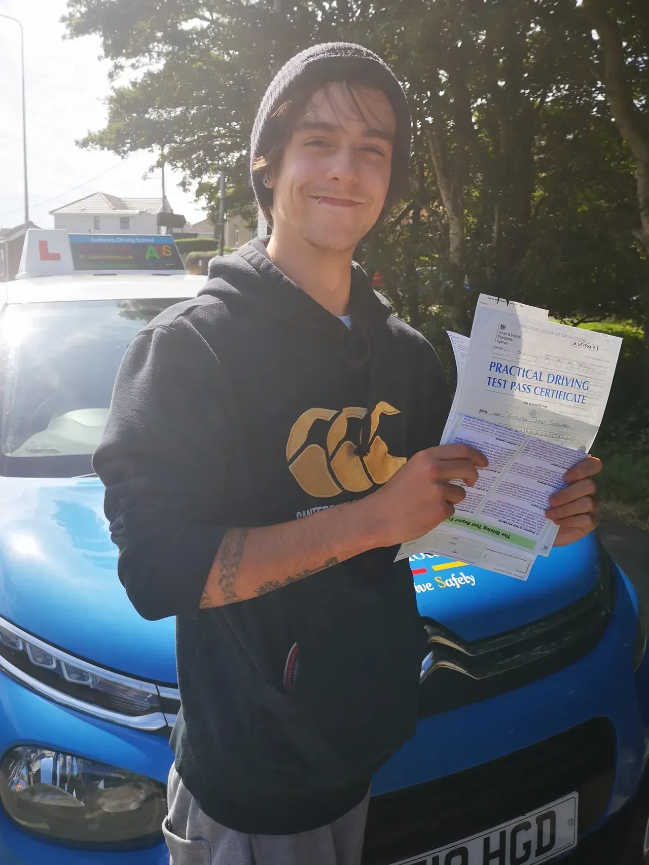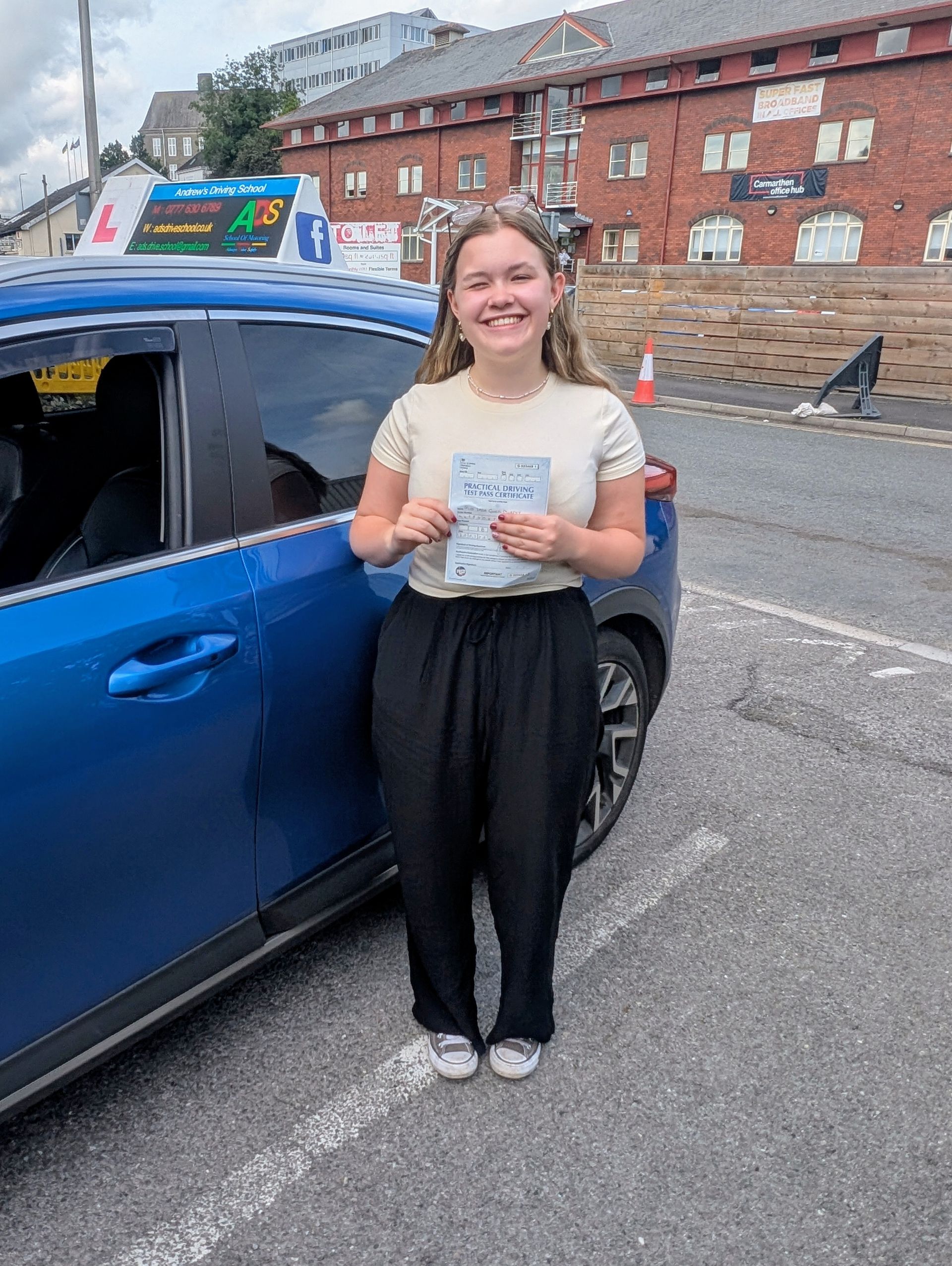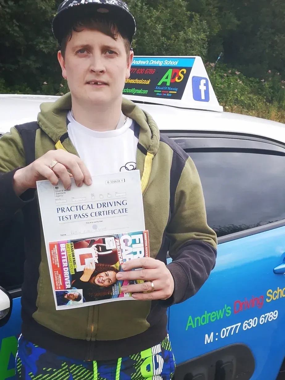 Aaron Tormey, Carmarthen, First time pass. Would like to thank Andrew for the time and patience he had for me, he made my driving experience a great experience and would highly recommend to anyone wanting to learn how to drive. Thank you Andrew! Beep beep haha!