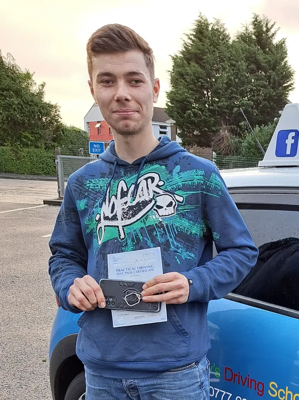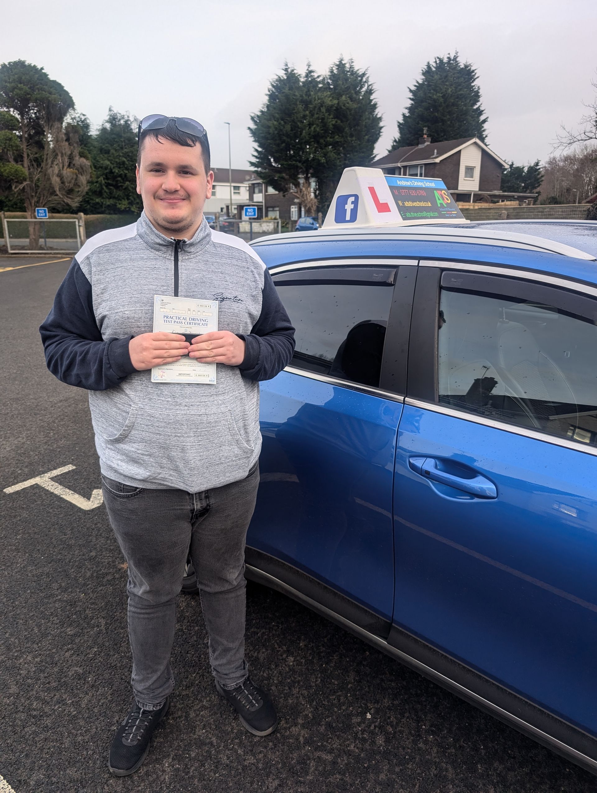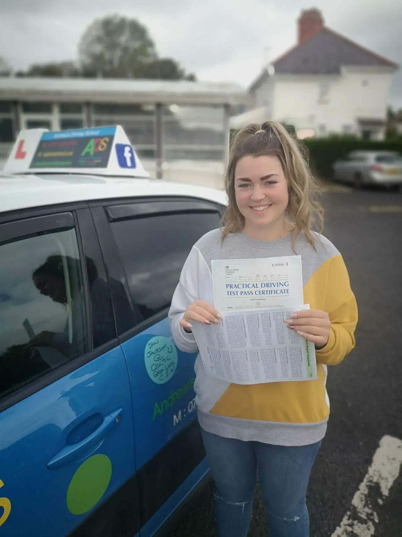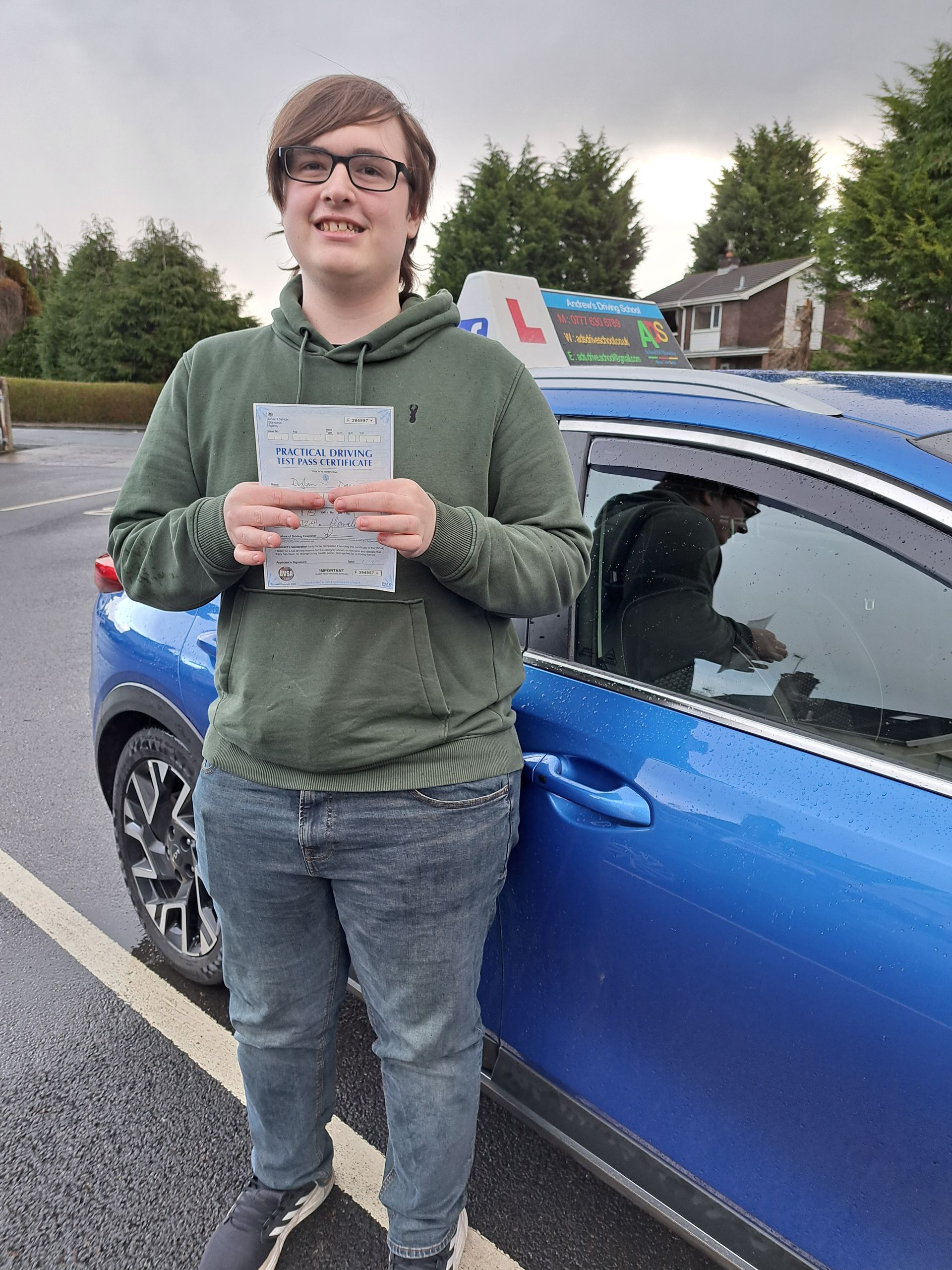Aaron Tormey, Carmarthen, First time pass. Would like to thank Andrew for the time and patience he had for me, he made my driving experience a great experience and would highly recommend to anyone wanting to learn how to drive. Thank you Andrew! Beep beep haha!