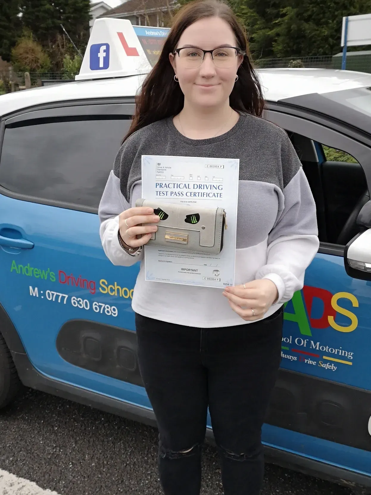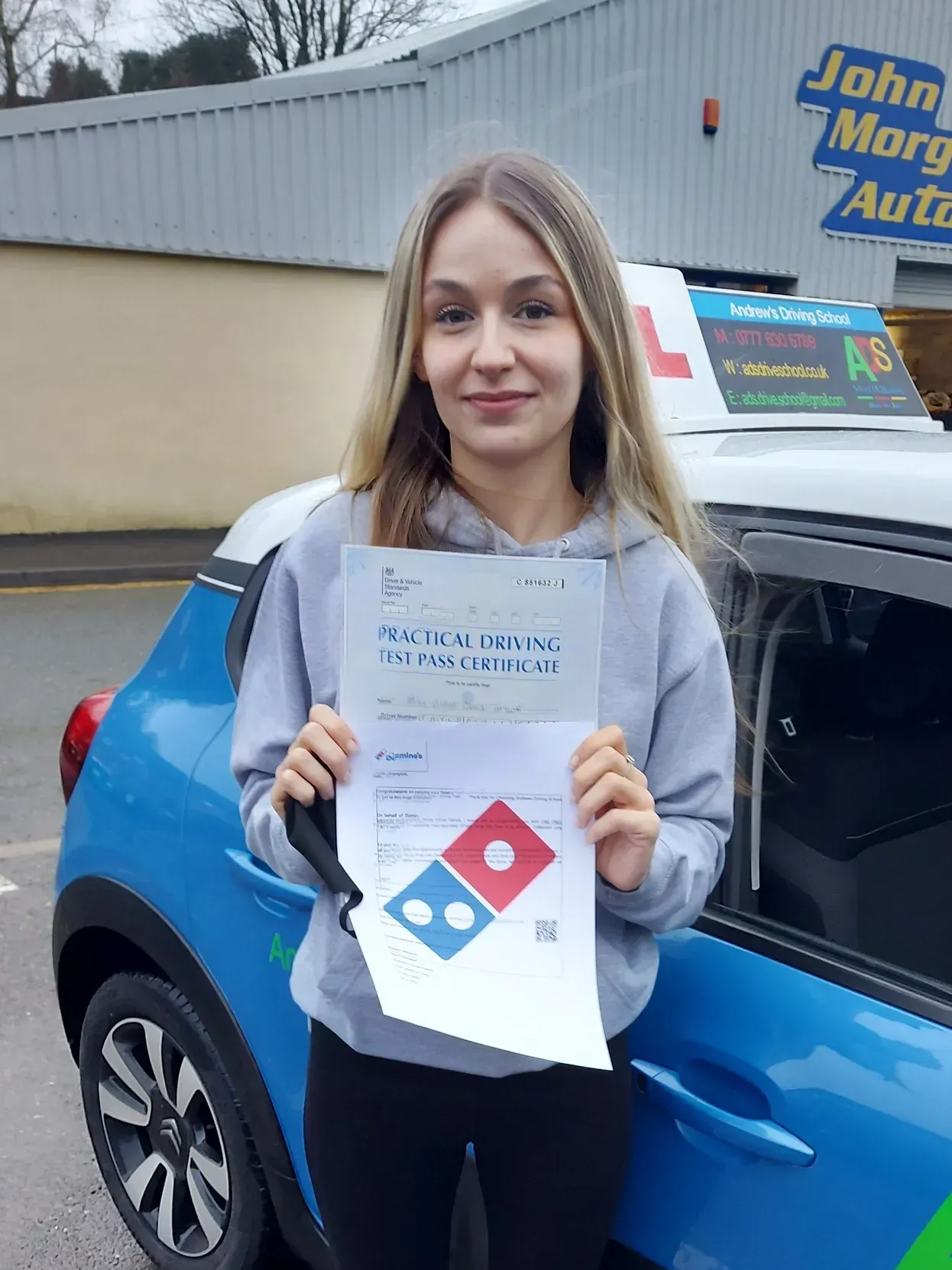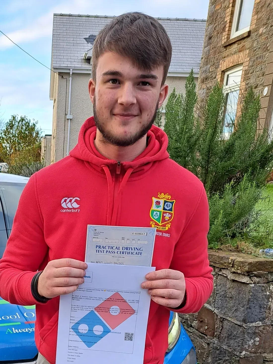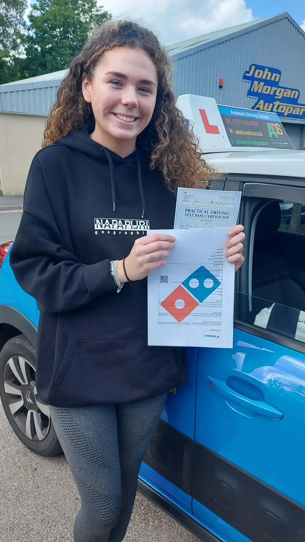Aaron Tormey, Carmarthen, First time pass. Would like to thank Andrew for the time and patience he had for me, he made my driving experience a great experience and would highly recommend to anyone wanting to learn how to drive. Thank you Andrew! Beep beep haha!