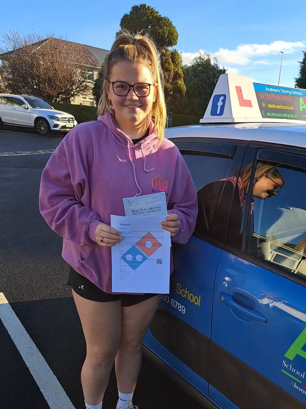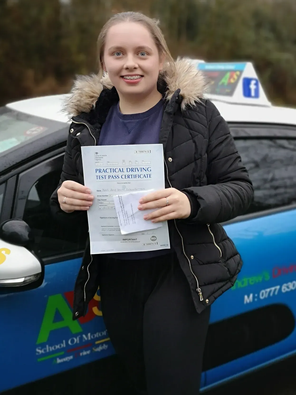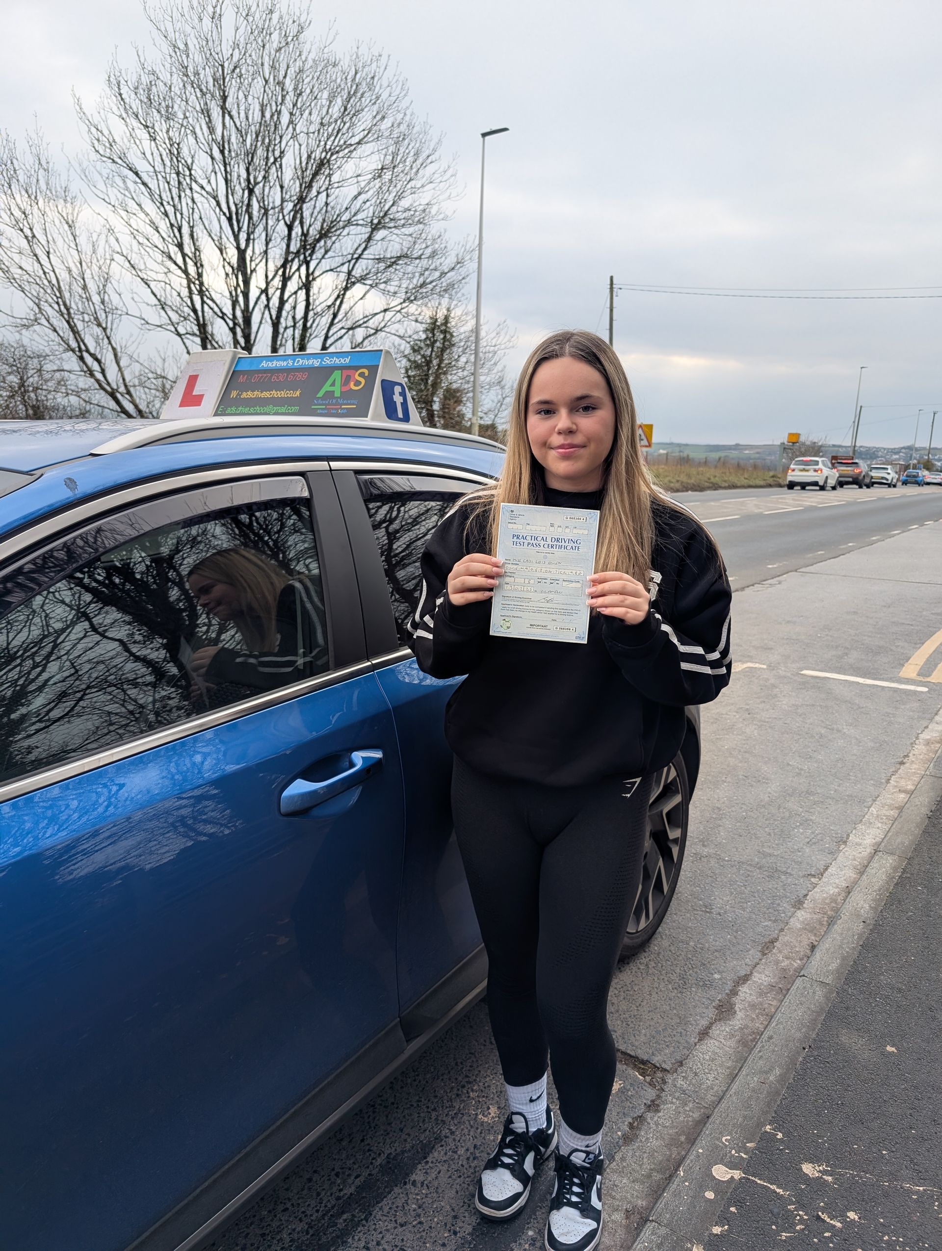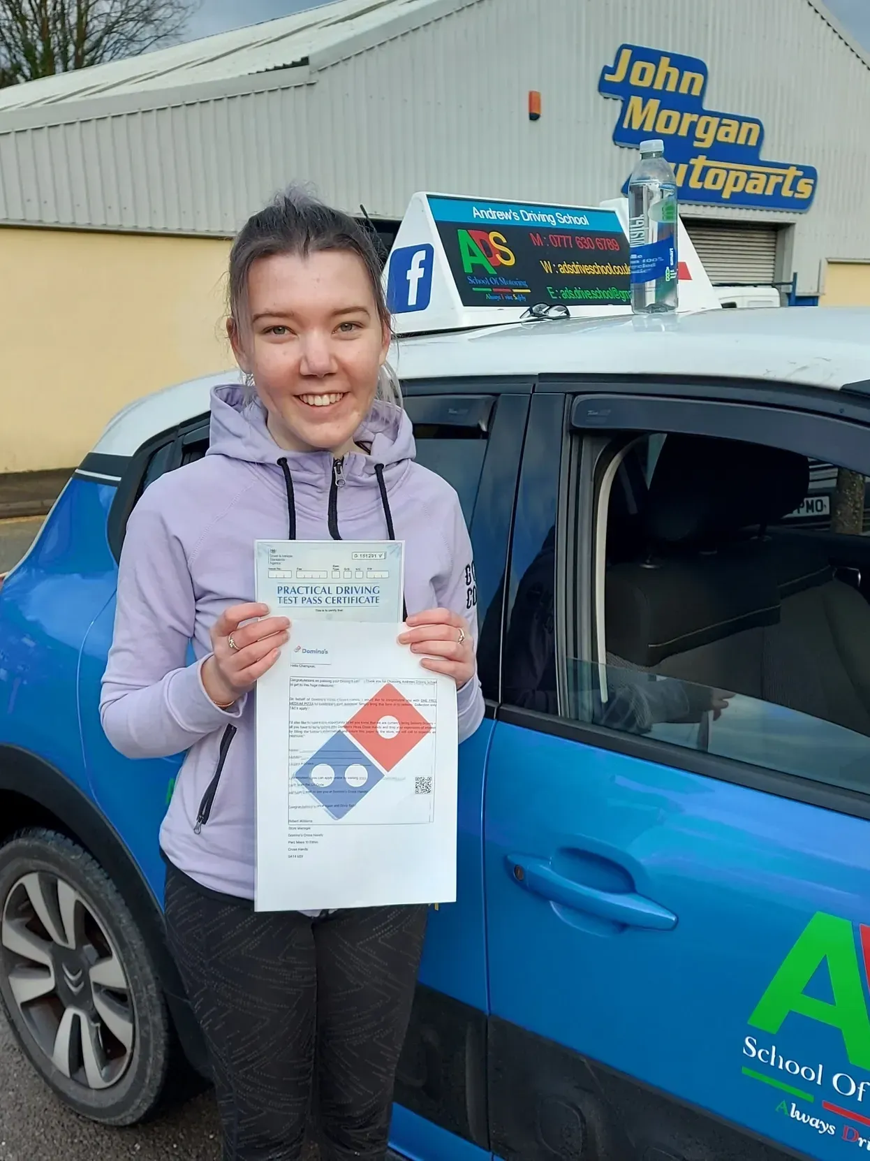 Abbie Williams, passed in Carmarthen first attempt with only 3 minor faults.