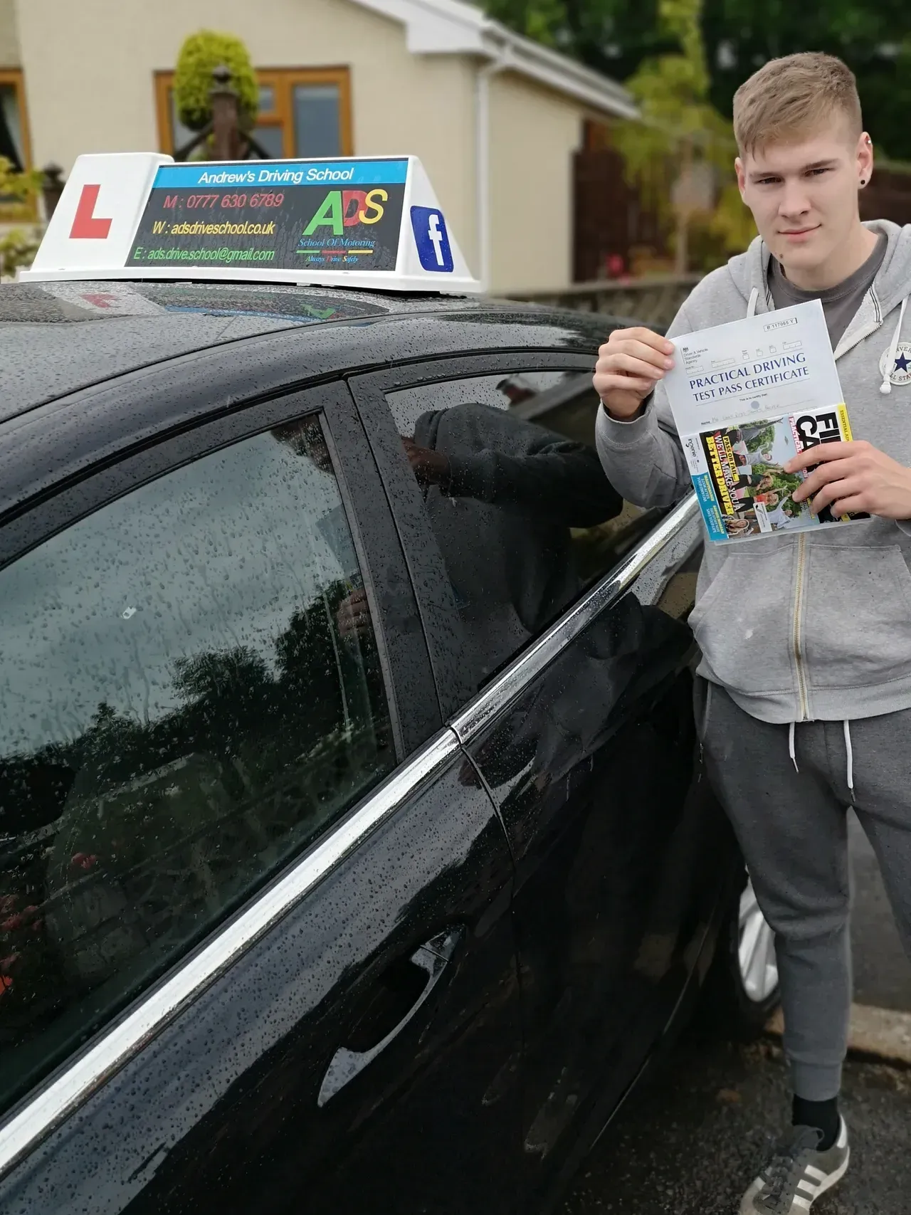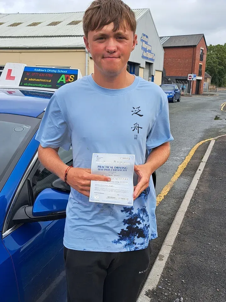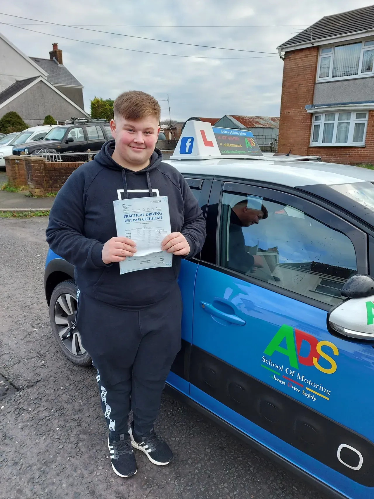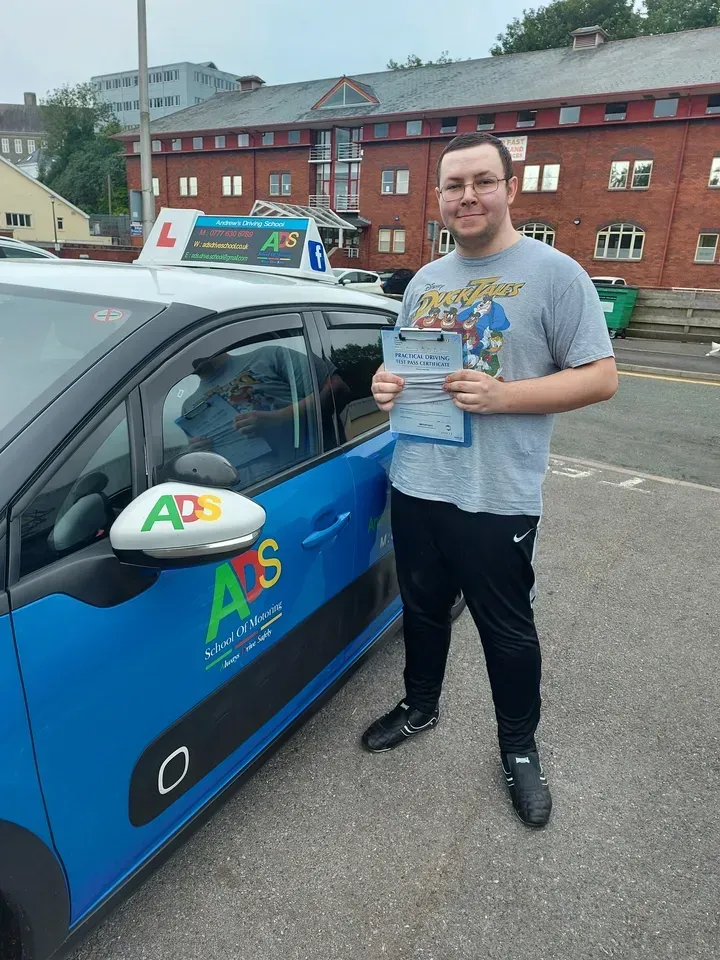 Owen Hall. Passed in Carmarthen, only 5 minor driving faults. Thank you to Andrew Evans and ADS driving school for an amazing driving service. Enjoyed every lesson and would highly recommend