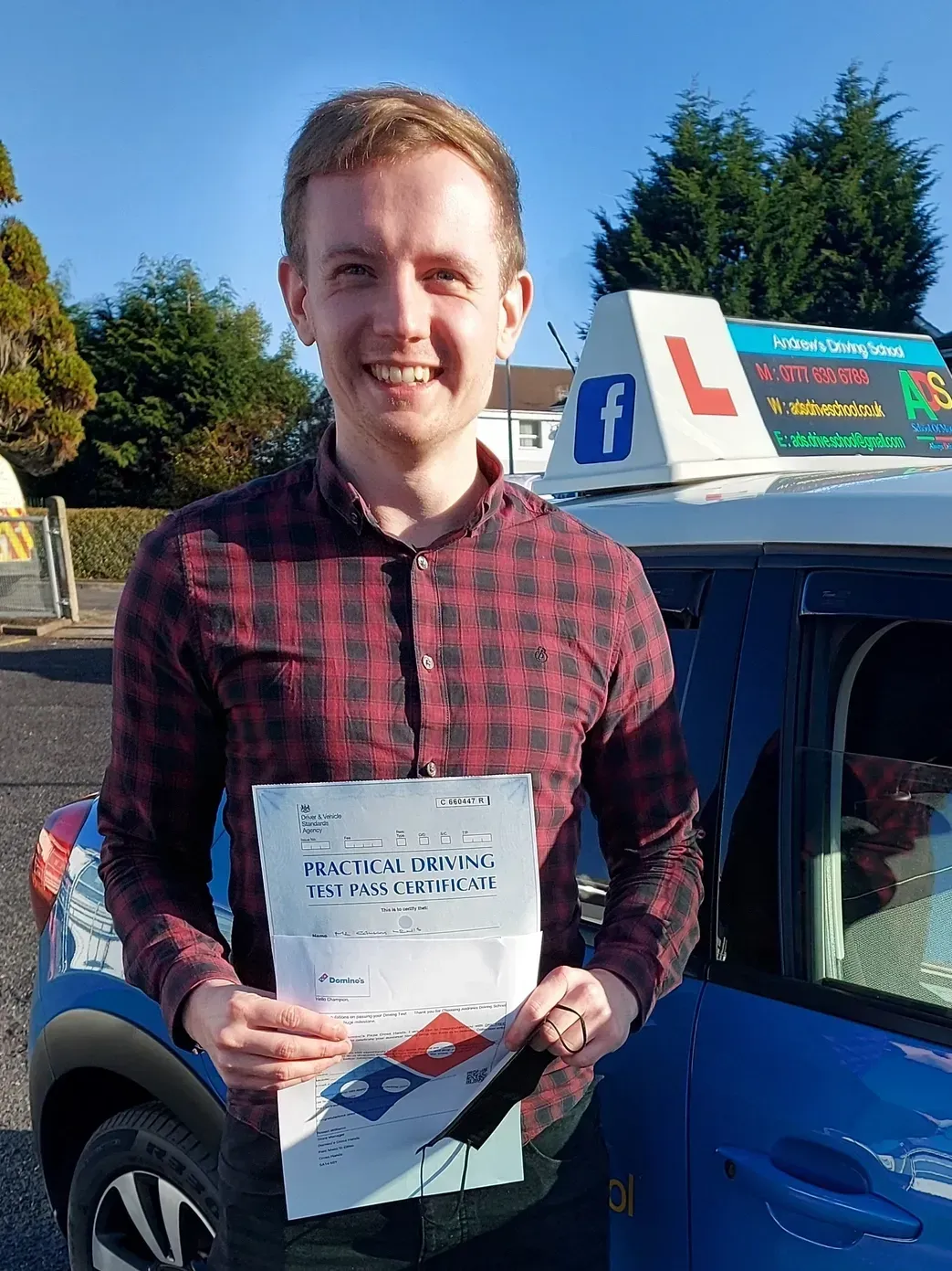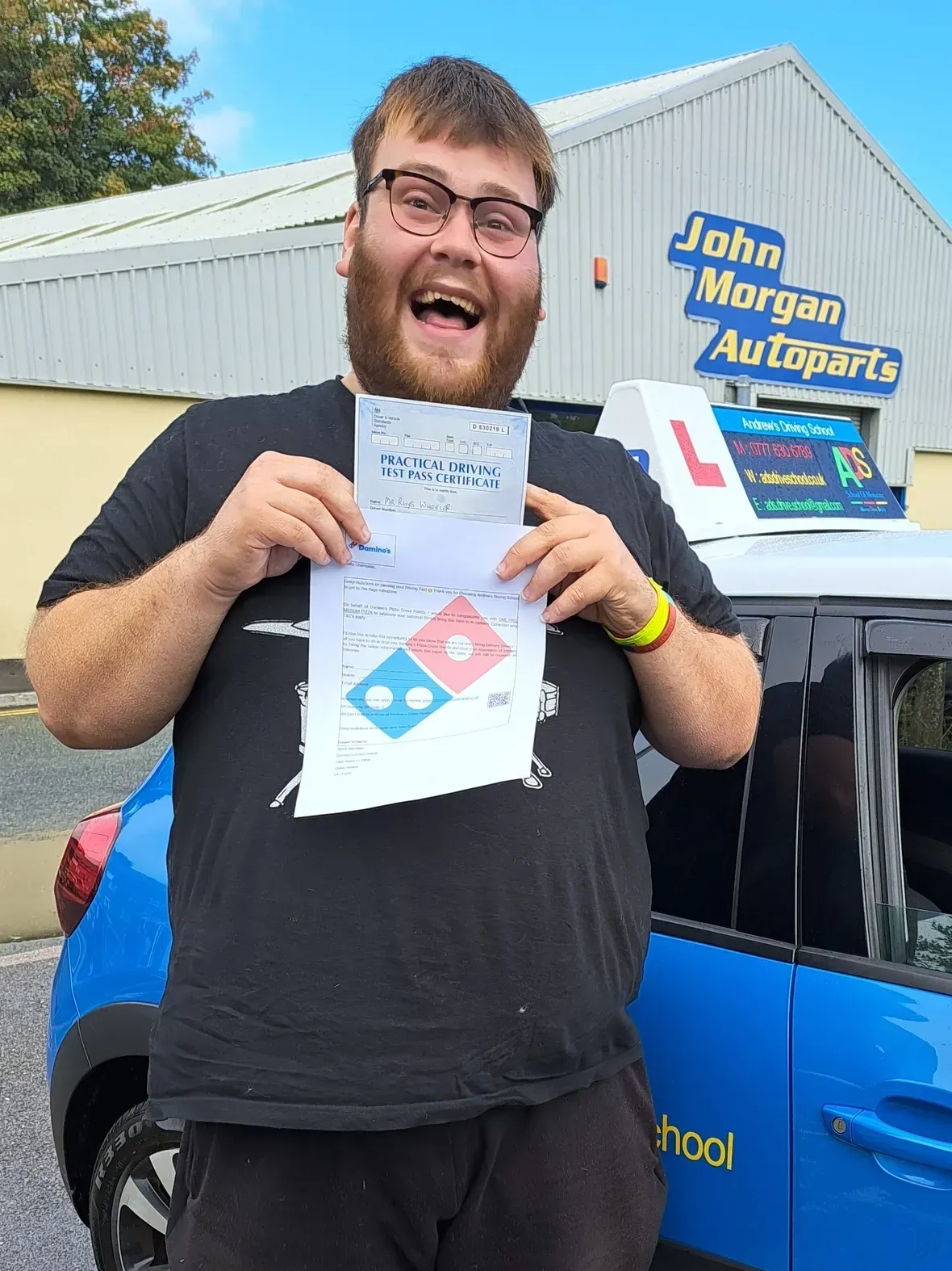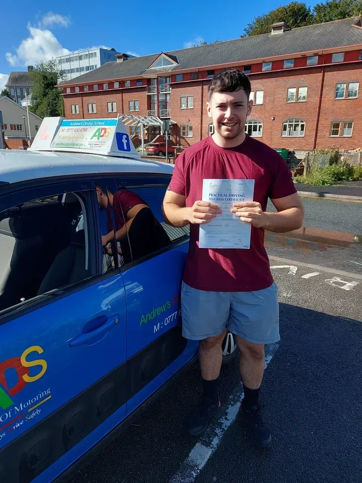 Owen Hall. Passed in Carmarthen, only 5 minor driving faults. Thank you to Andrew Evans and ADS driving school for an amazing driving service. Enjoyed every lesson and would highly recommend