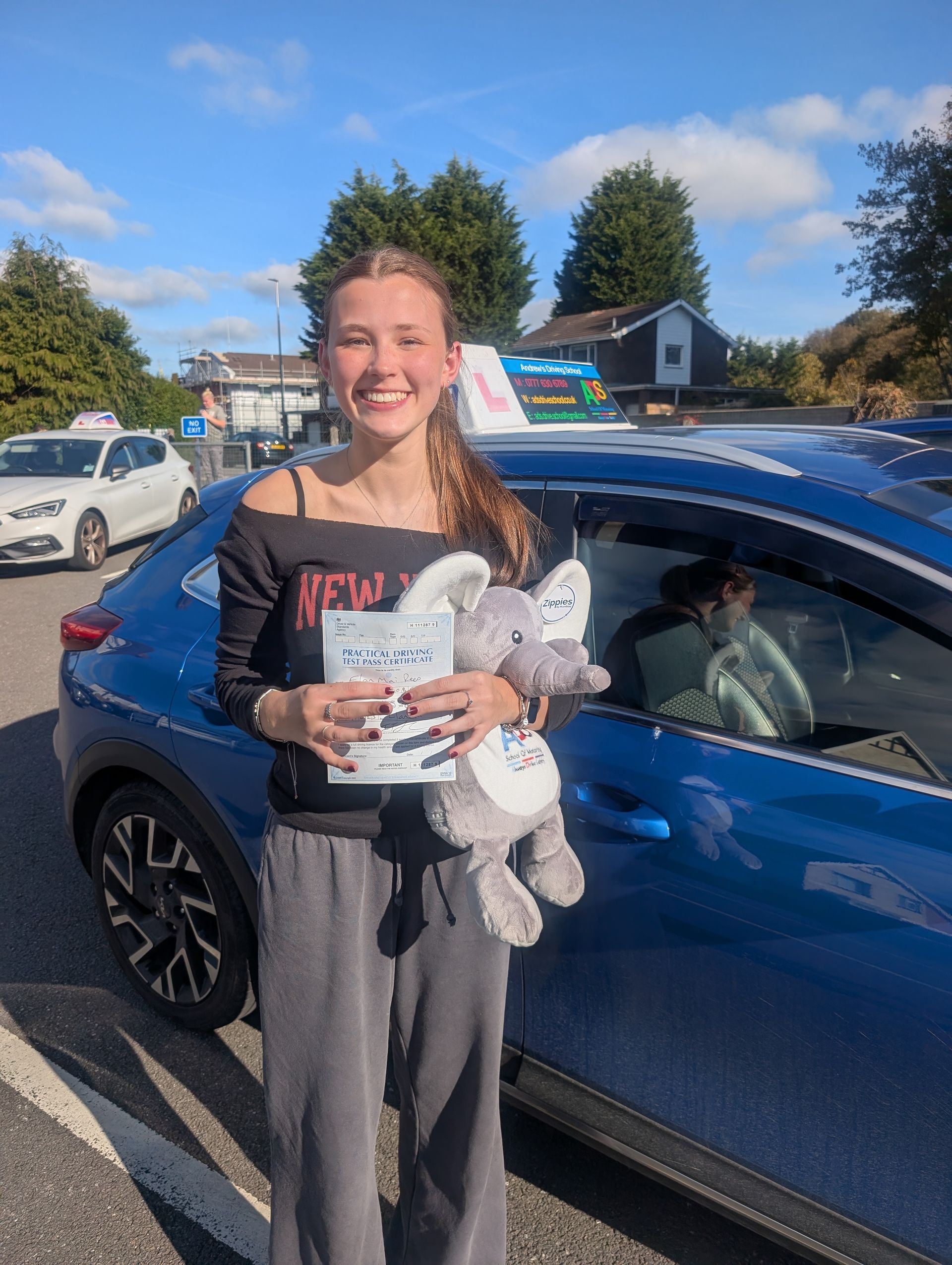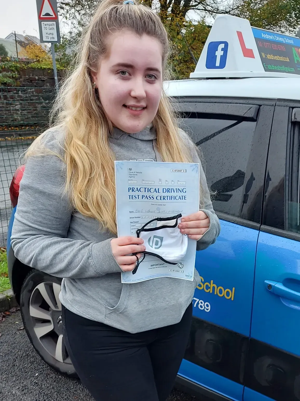 Ellie Morris passed in Llanelli with just 3 minor driving faults.