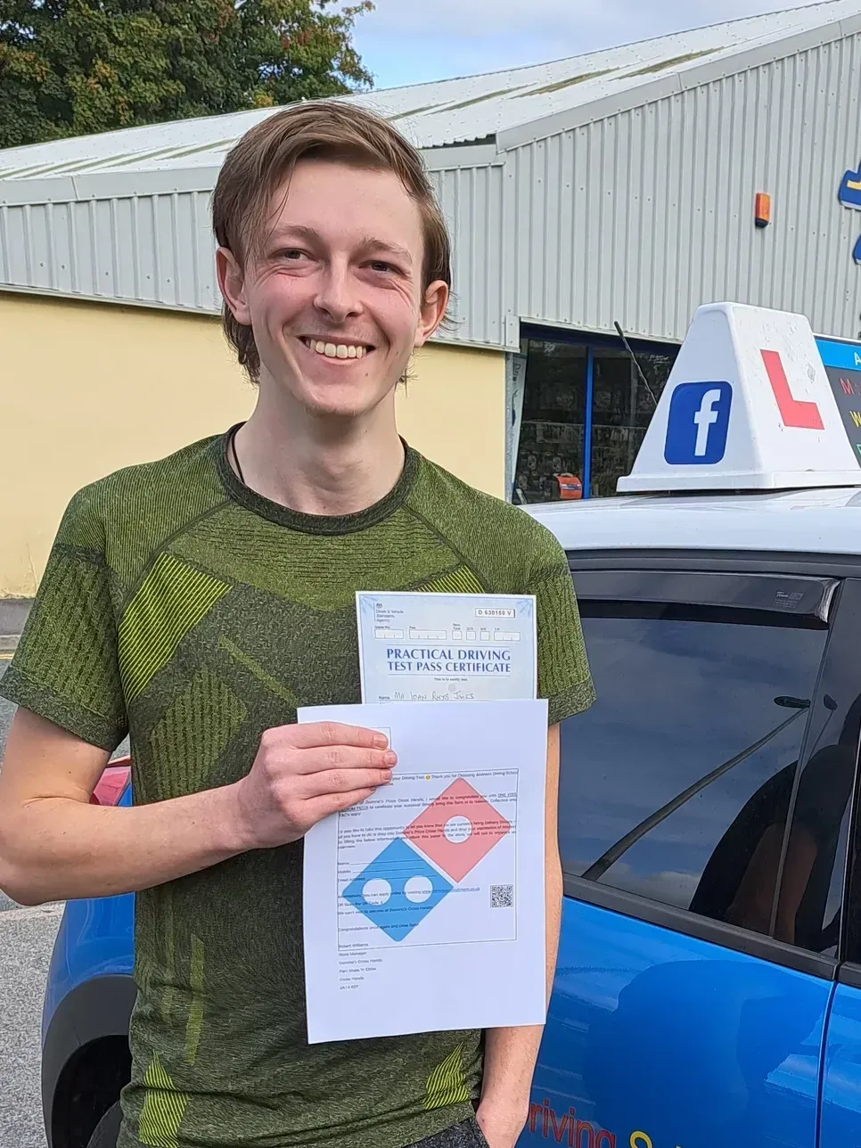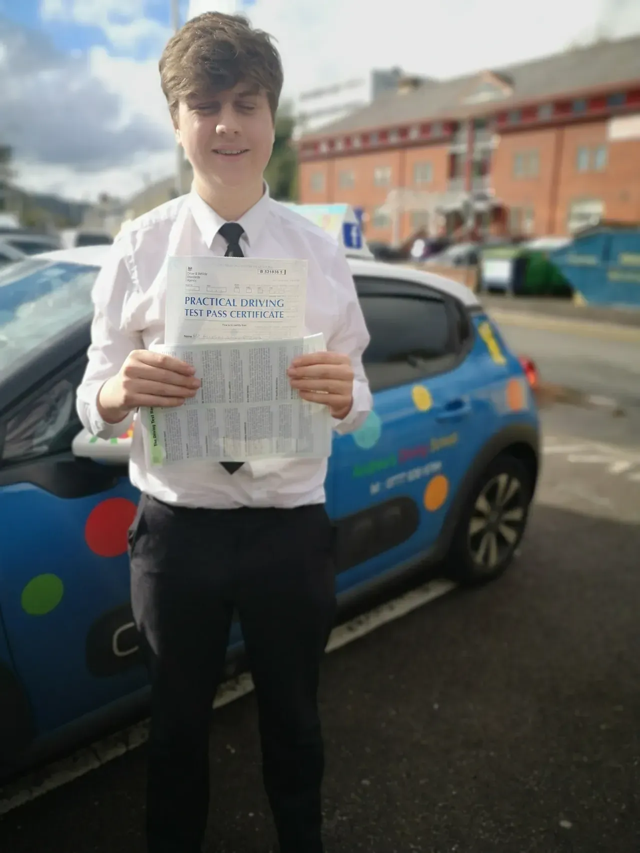 Joshua Bartlett, passed in Carmarthen with just 3 minor driving faults.