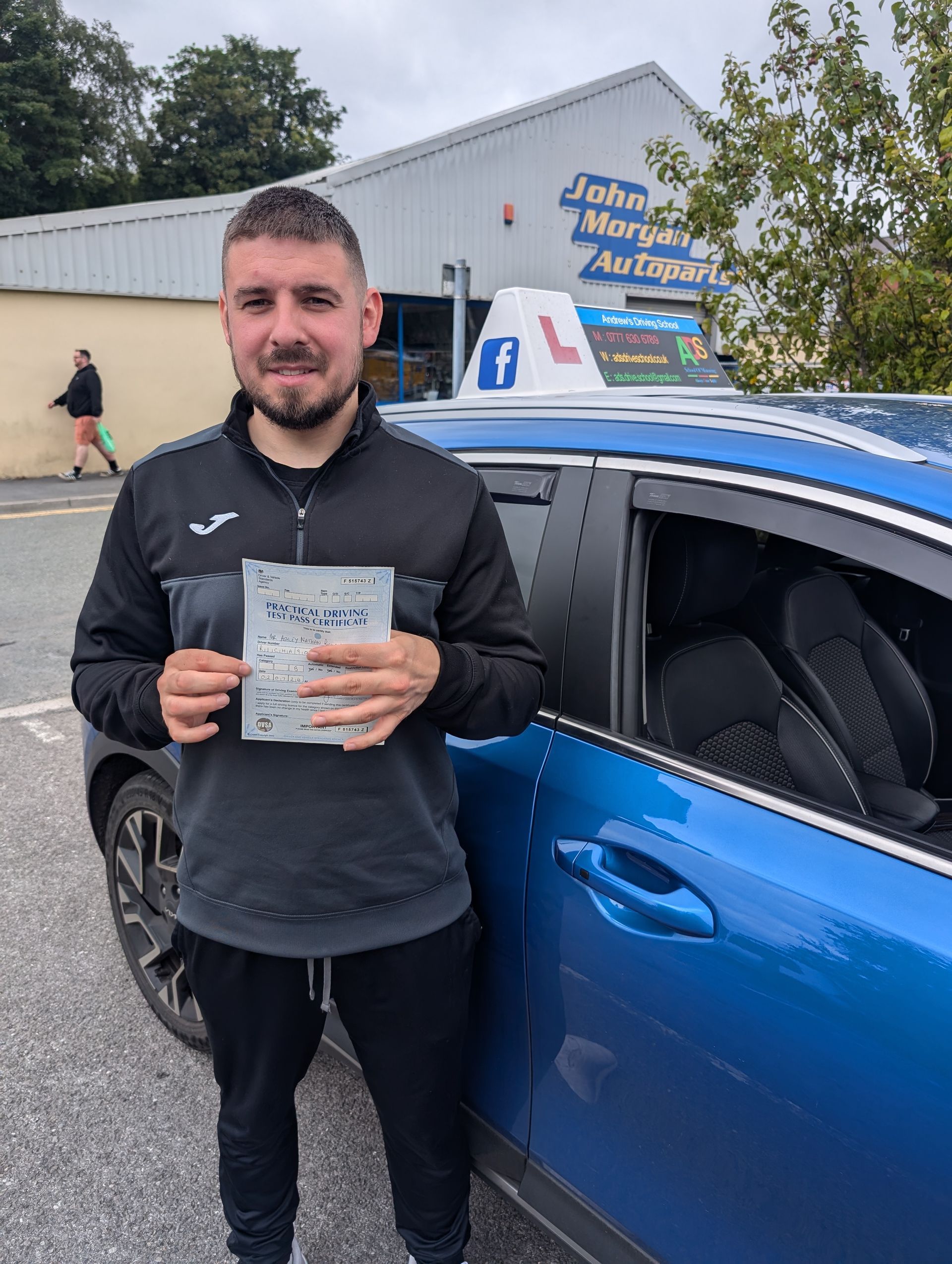 Dan Morris, passed in Llanelli. Andrew was calm, patient and encouraging. I would recommend him to anyone looking to start driving lessons.