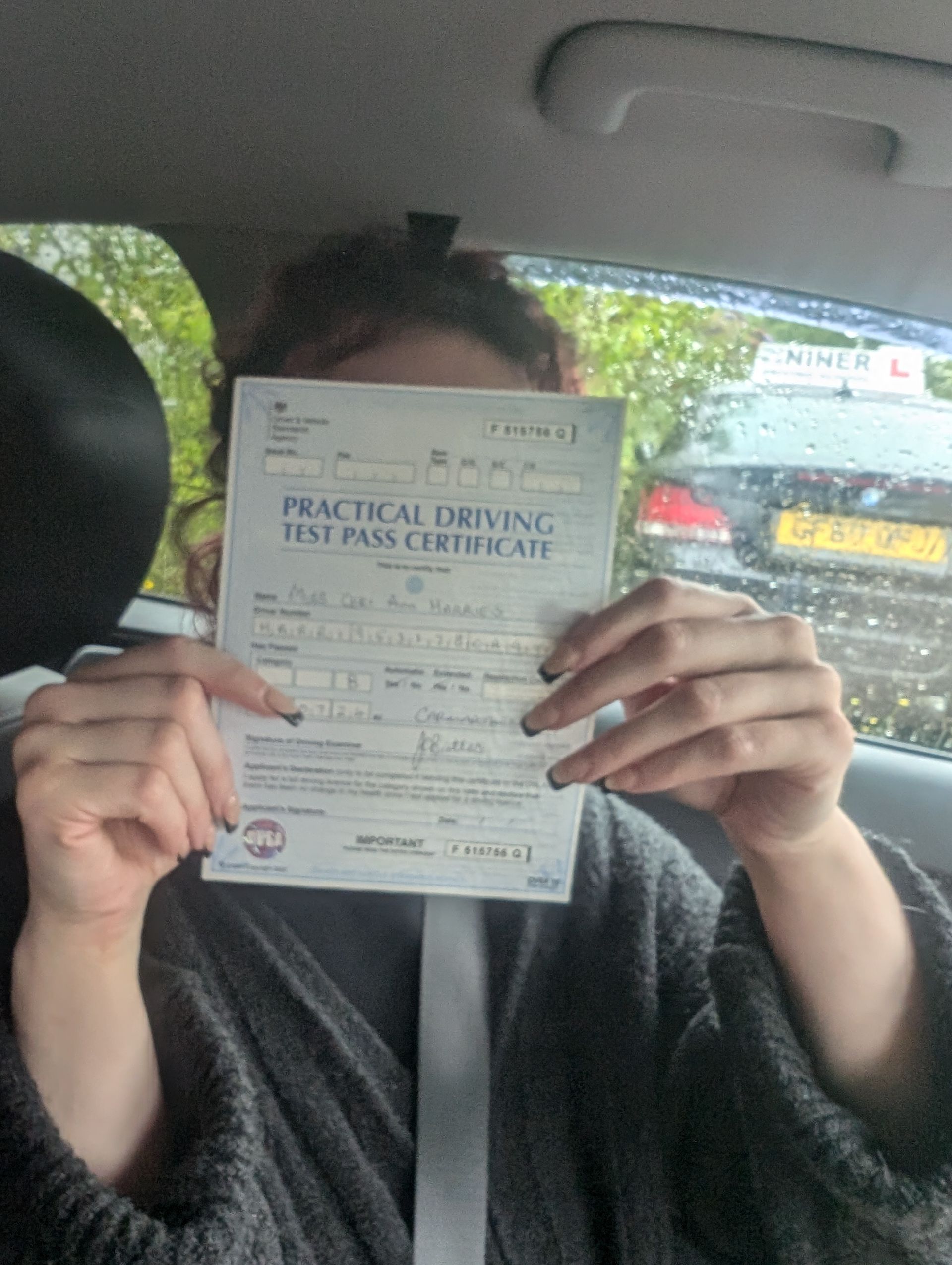 Ceri-Ann Harris, passed in Carmarthen with just 5 minor faults
