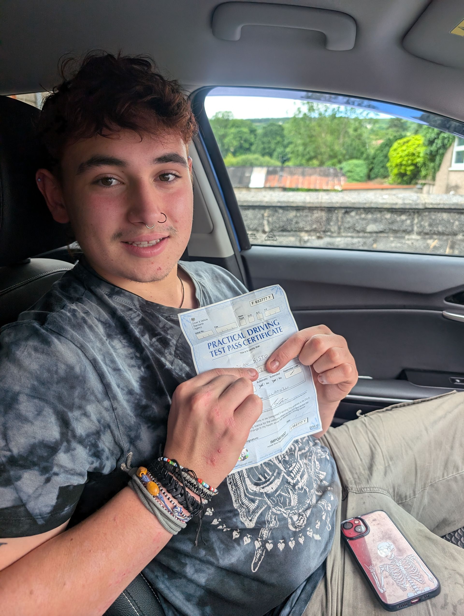 Obi Thomas-Roberts, passed in Swansea with compliments from the examiner.