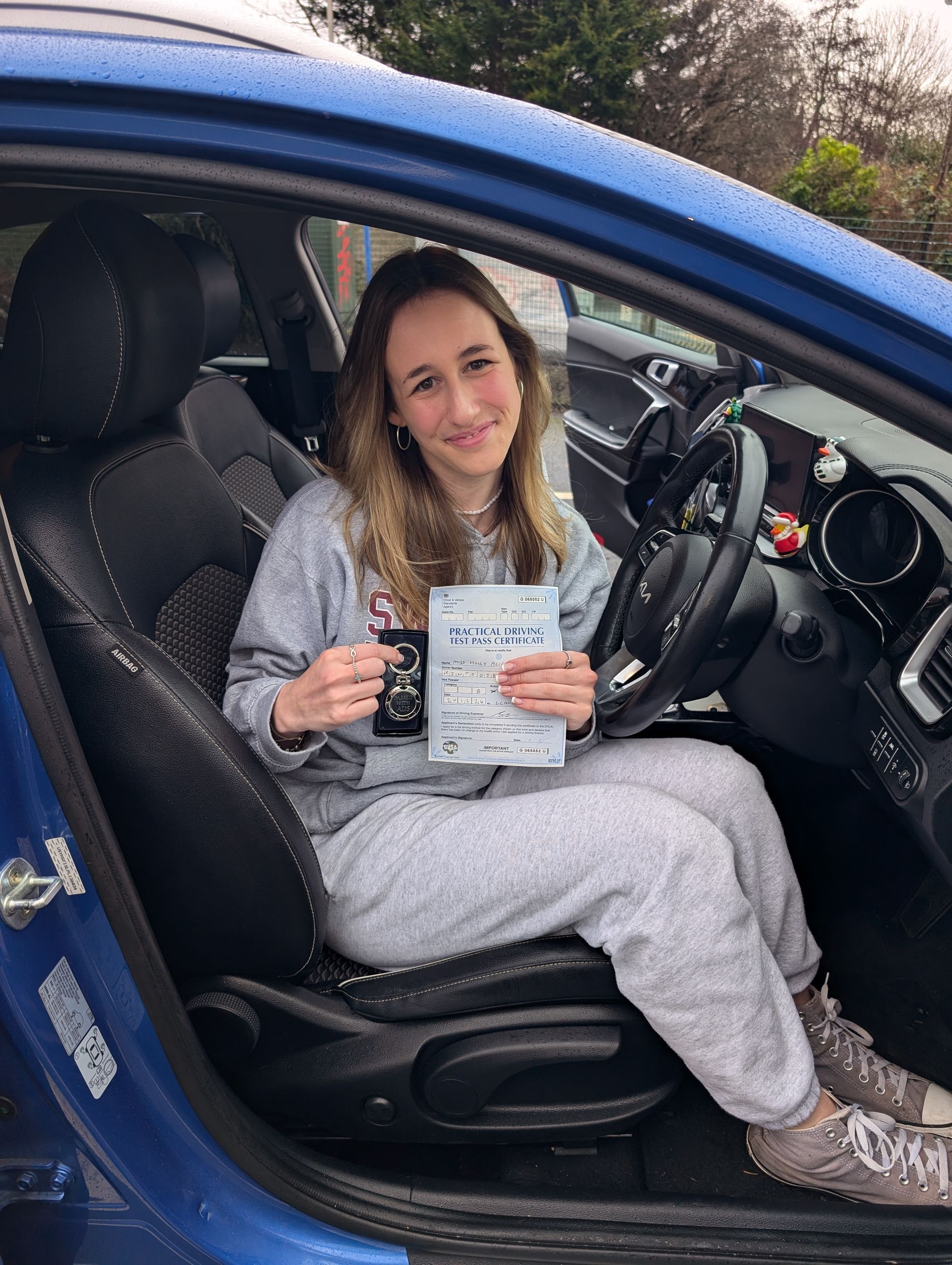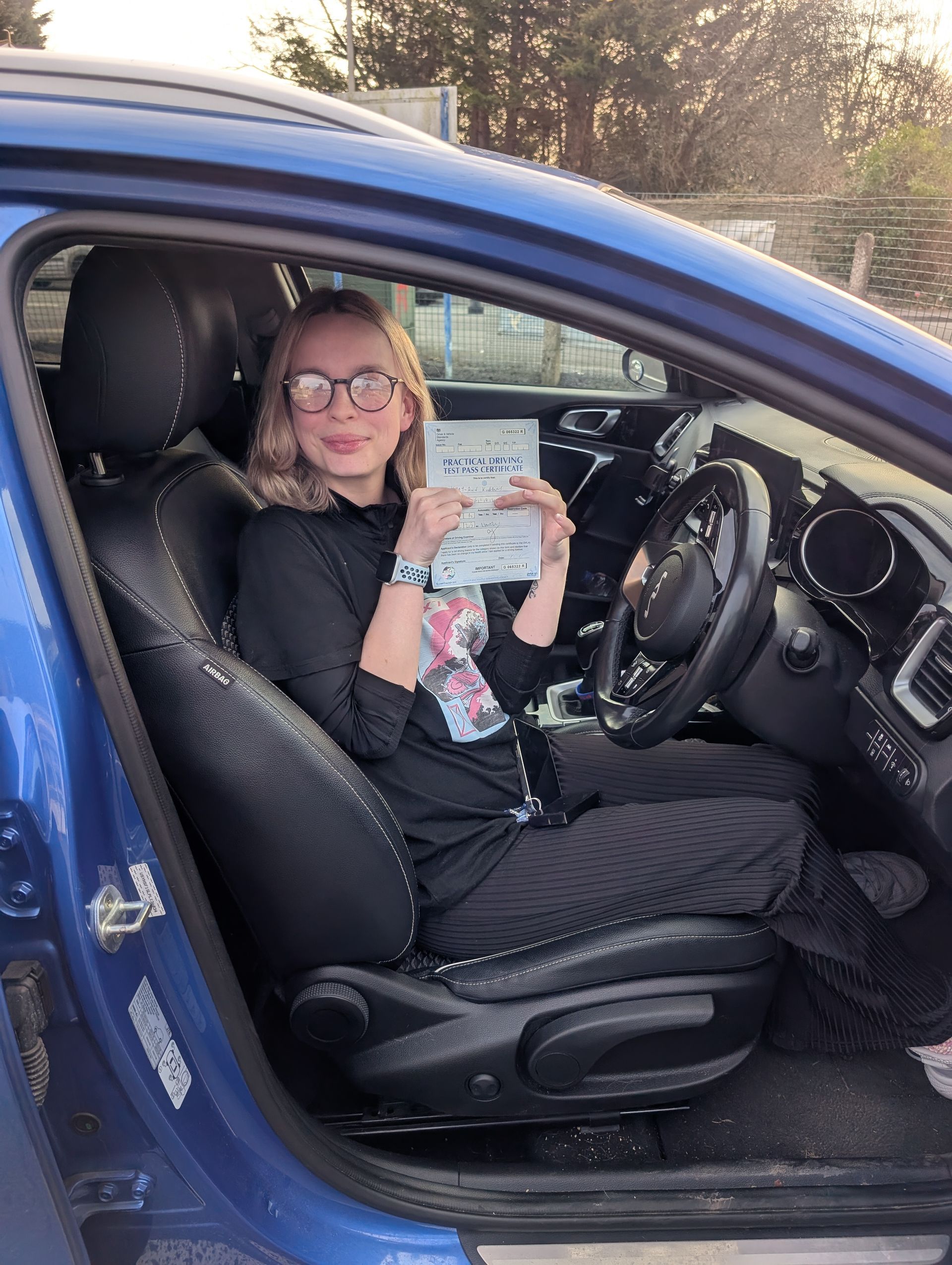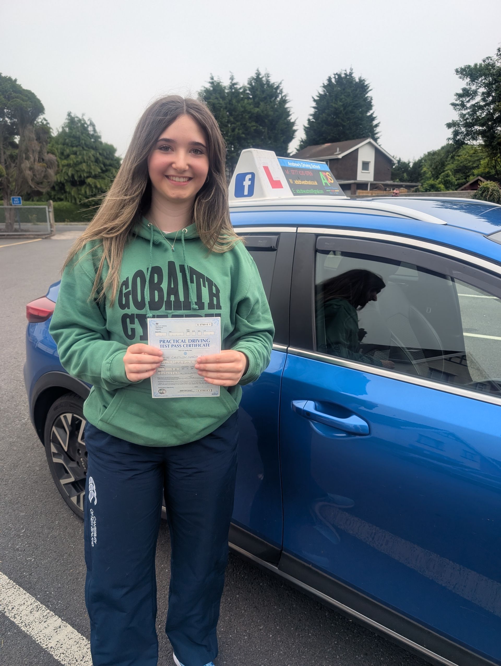 Clara James, passed first time in Carmarthen, a well deserved, excellent result.