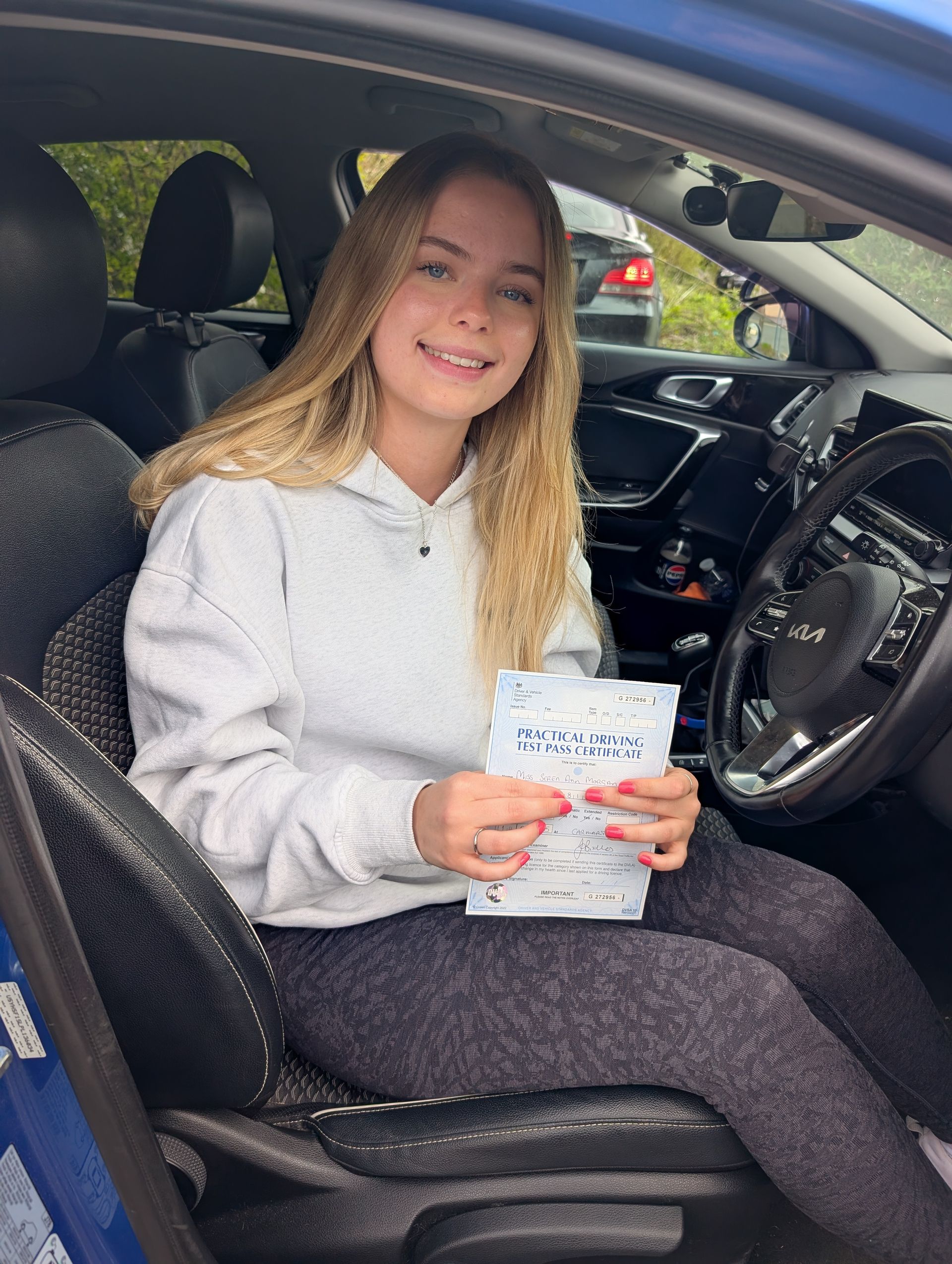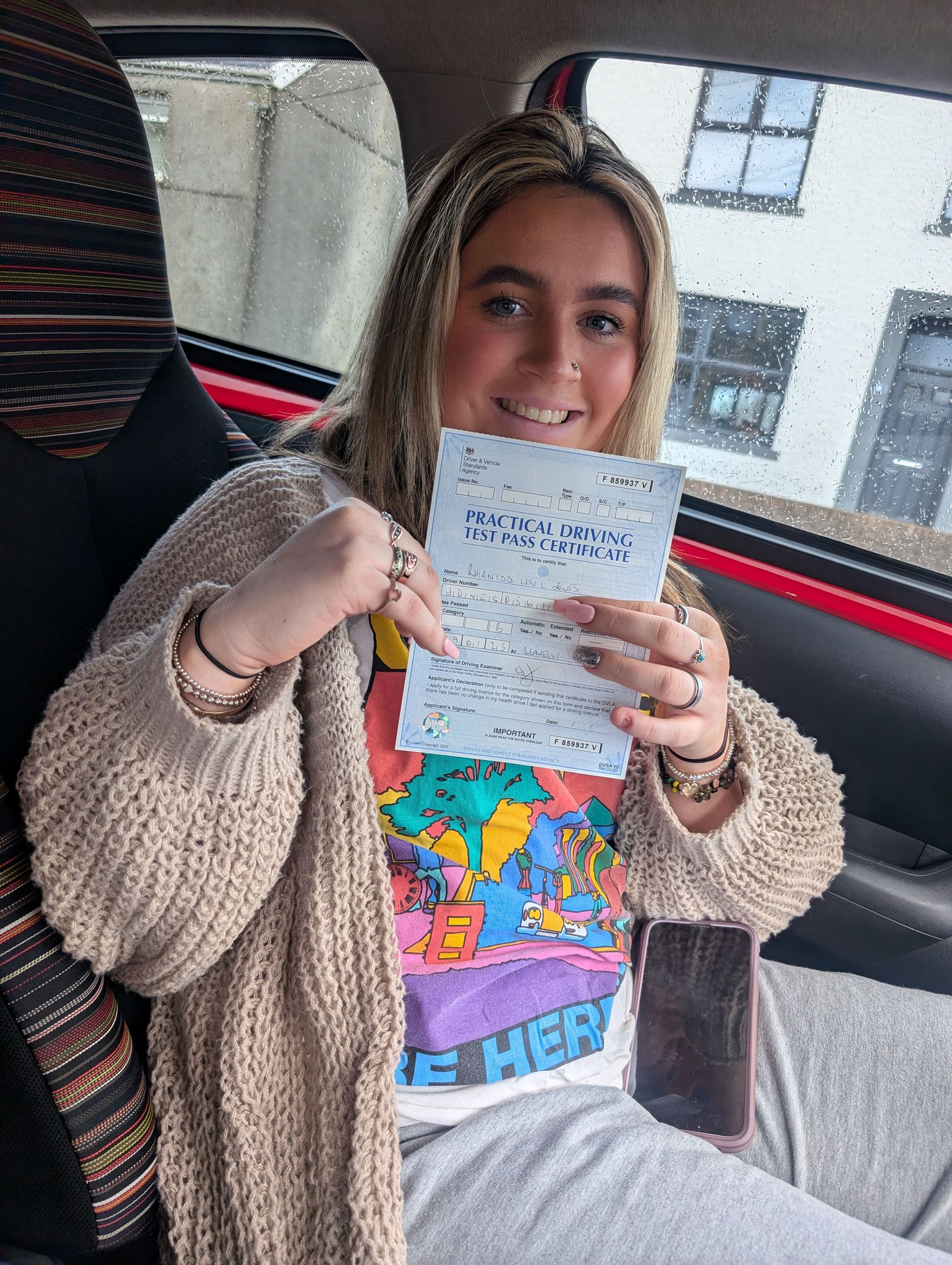 Caitlyn Williams, passed first time in Carmarthen with just 4 minor faults.