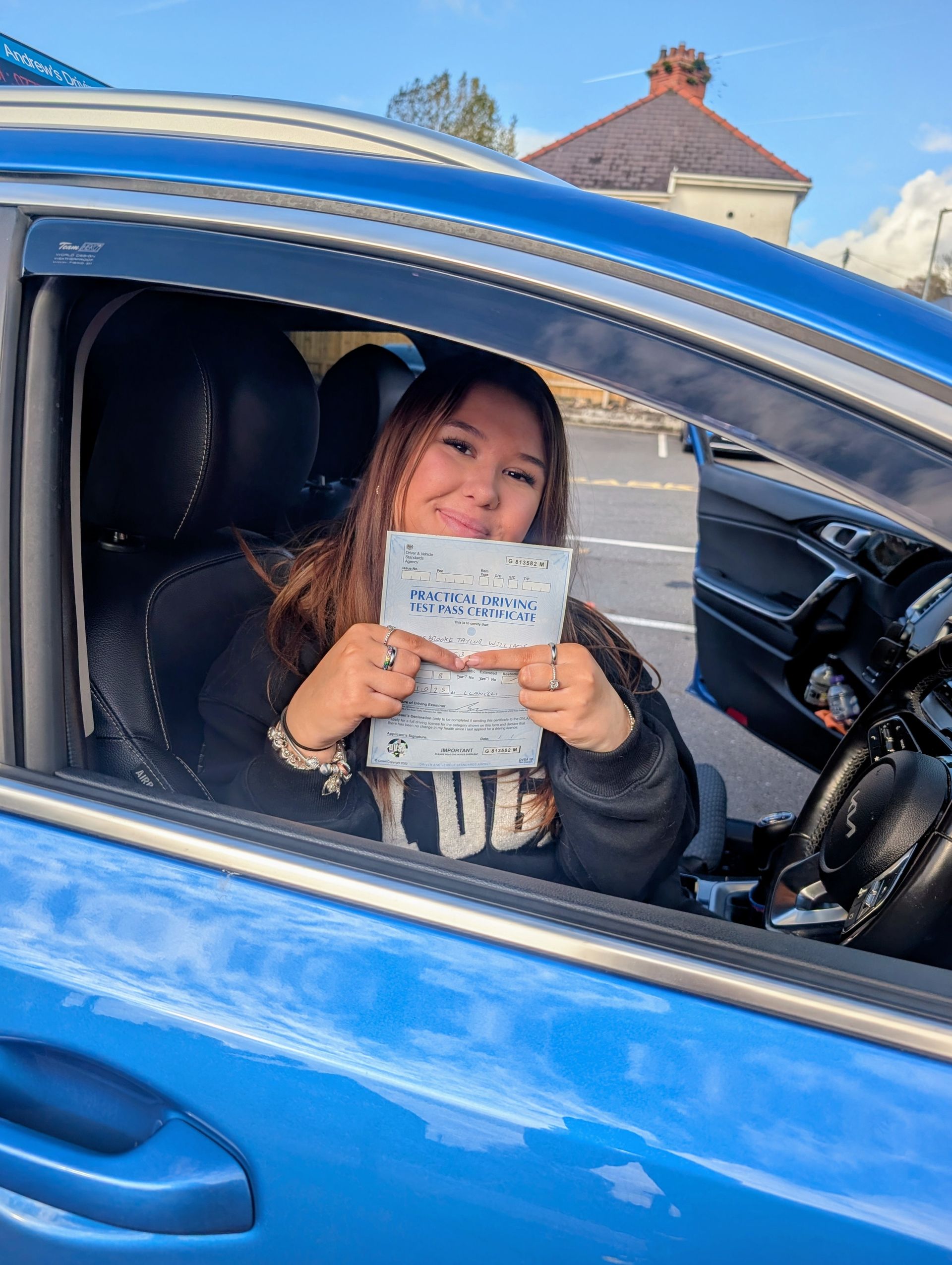 Cerys Whitby, passed her test in Llanelli, with just 3 minor faults.