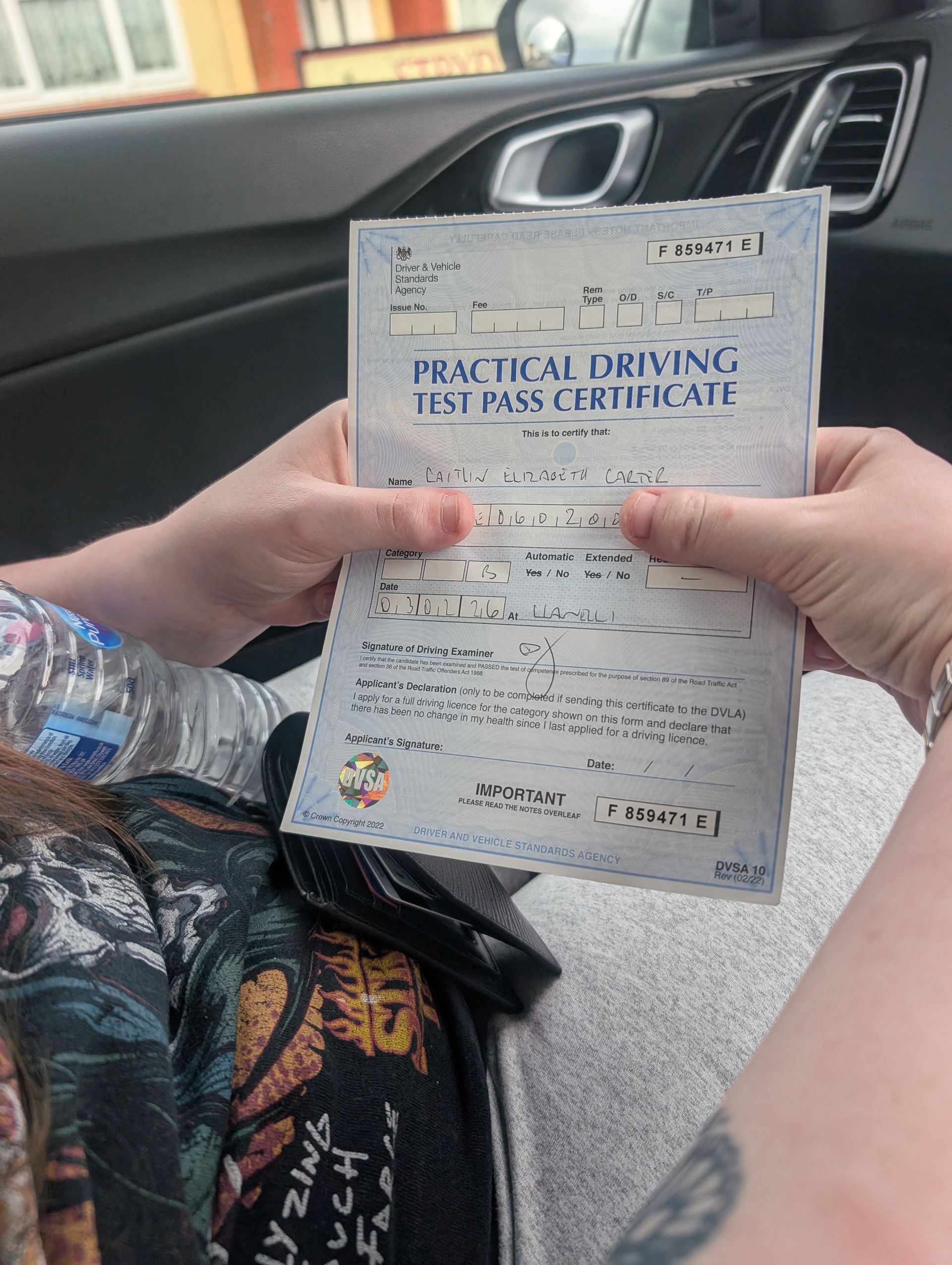 Caitlin Scotti. Passed at the first attempt in Llanelli.